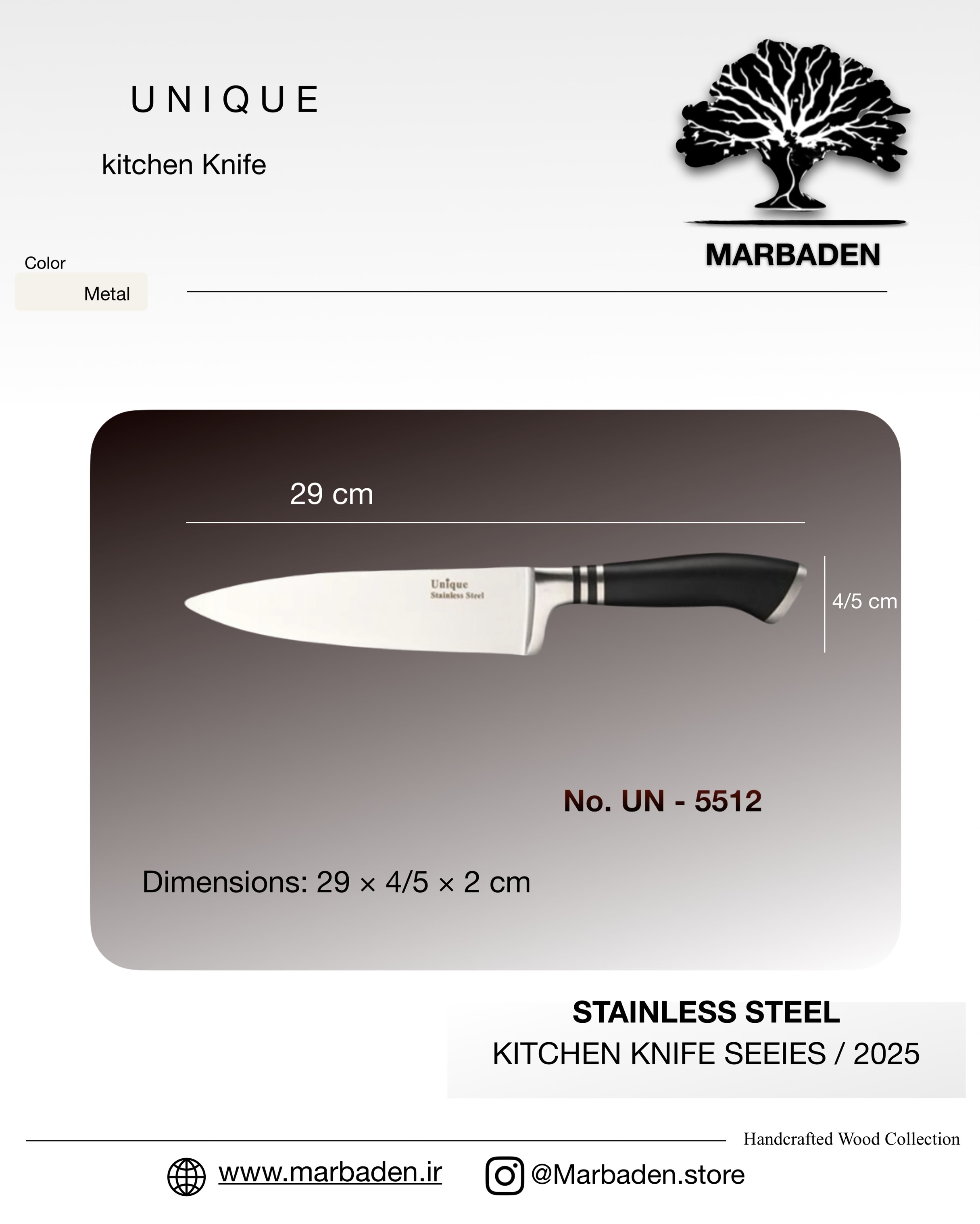 این چاقوی آشپزخانه از برند یونیک در سایز متوسط طراحی شده و برای کارهای روزمره بسیار مناسب است.