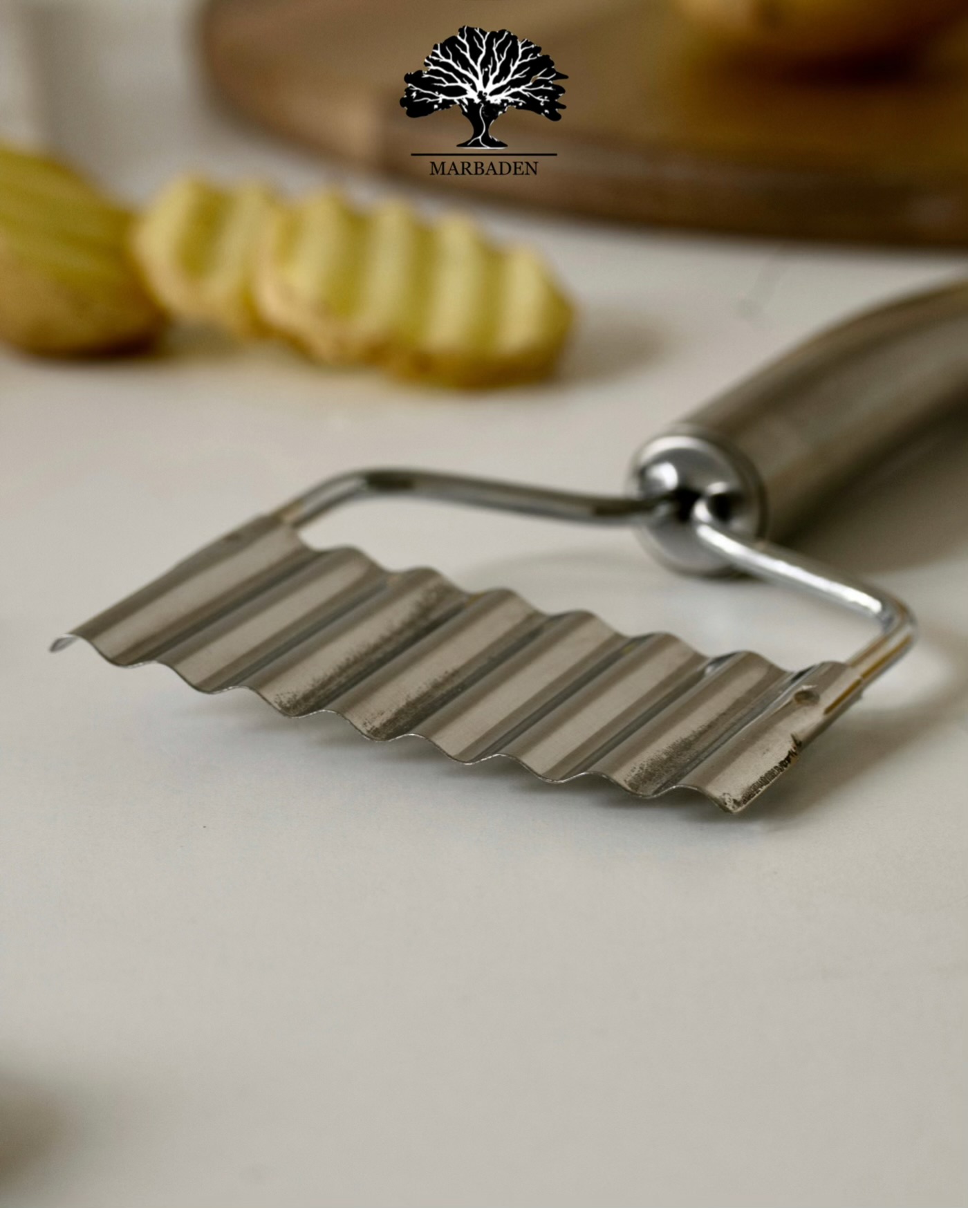 تماماً از استیل ضدزنگ ساخته شده (تیغه و دسته)، مدل دستی با تیغه کنگرهای (موجدار یا wavy) که خلالها رو زیبا و یکنواخت میکنه. وزن حدود ۱۰۰ گرم. سبک، جمعوجور و بدون قطعات متحرک پیچیده. تیغهش تیز و مقاومه و دستهش ارگونومیک برای فشار راحت.