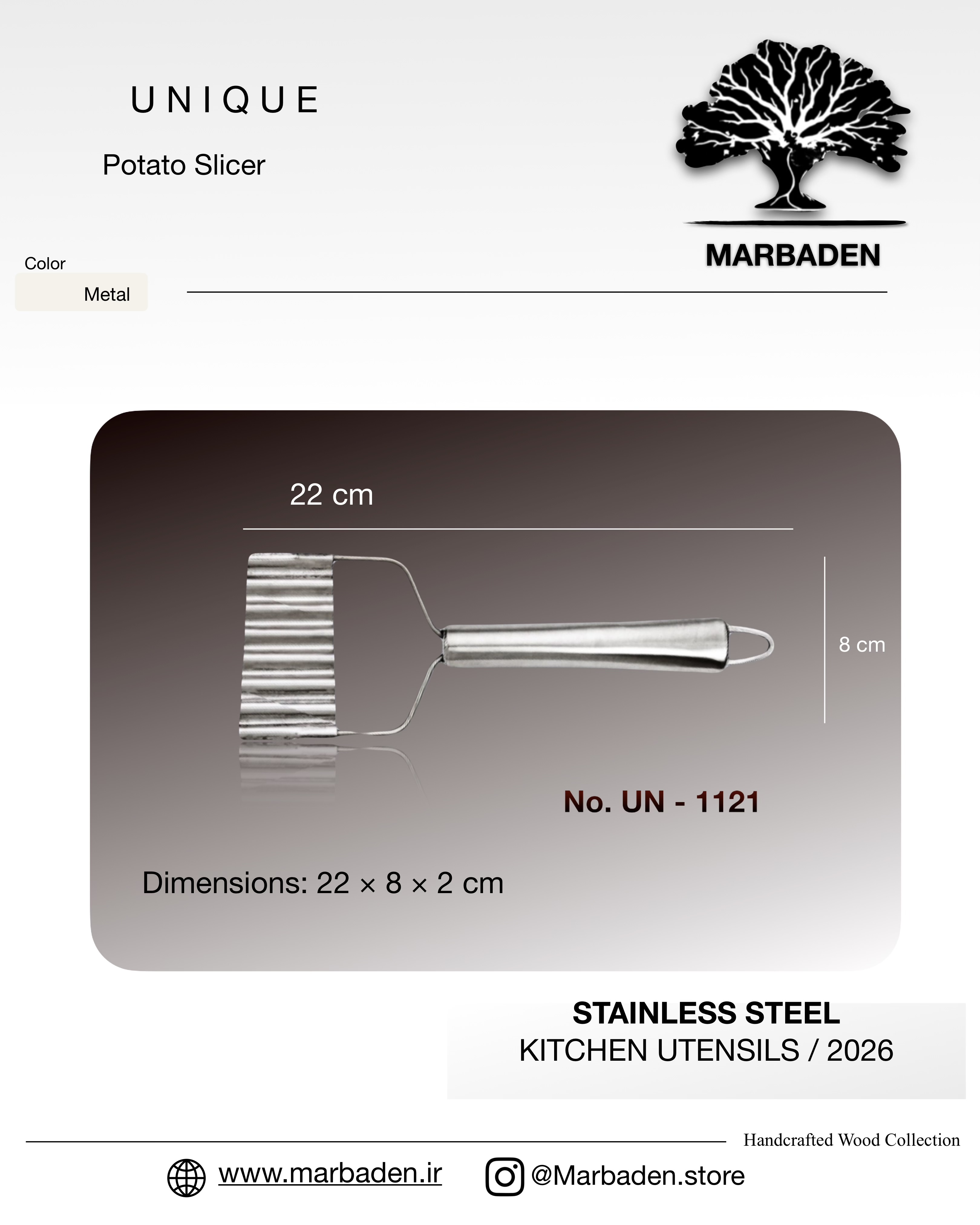 خلالکن سیبزمینی استیل یونیک UN-1121 یه ابزار دستی ساده و همهکارهست که برای خلال کردن سریع سیبزمینی، هویج، خیار و سبزیجات مشابه طراحی شده و خیلی پرطرفداره، خصوصاً برای سالاد الویه، چیپس خانگی یا سیبزمینی سرخکرده.