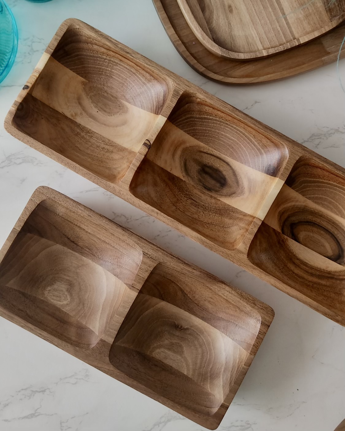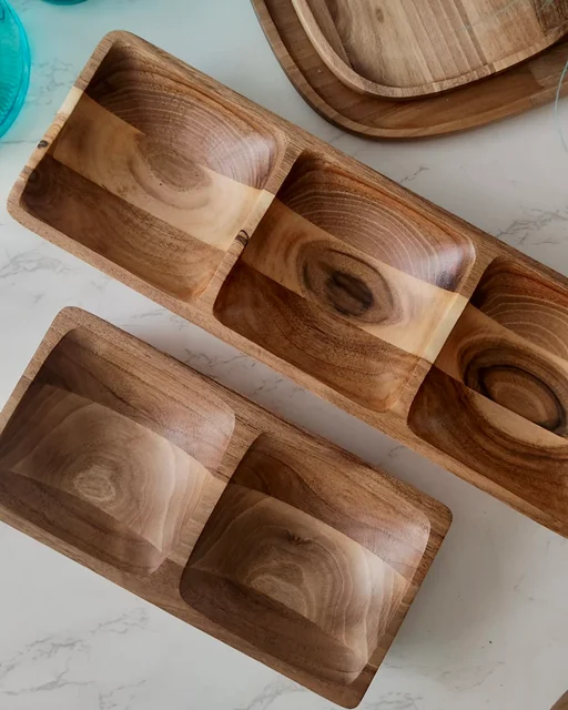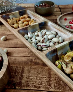 اگه دنبال یه ظرف شیک و منظم برای سرو تنقلات و خوراکیها هستی، این اردوخوری مربعی شکل از چوب گردو، یه انتخاب بینقصه. طراحی چهارخانه و نظم هندسی، کنار رنگ گرم چوب گردو، باعث شده این ظرف تبدیل بشه به نقطهی تمرکز میز پذیرایی.