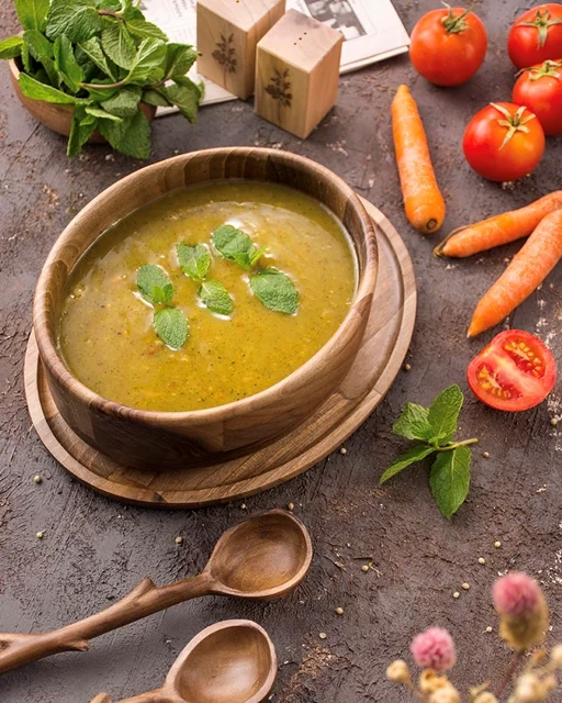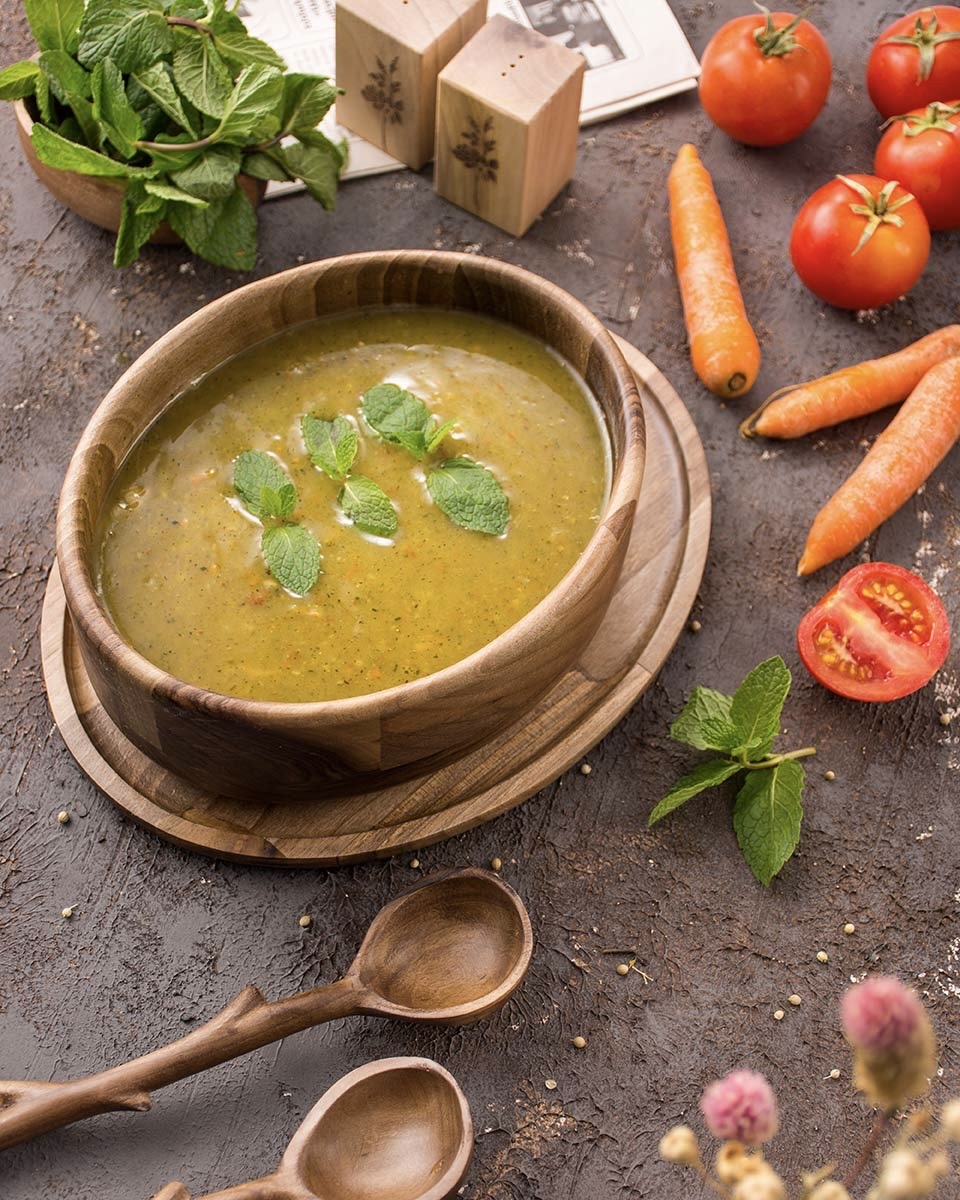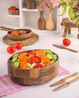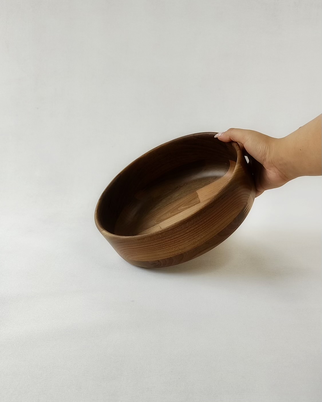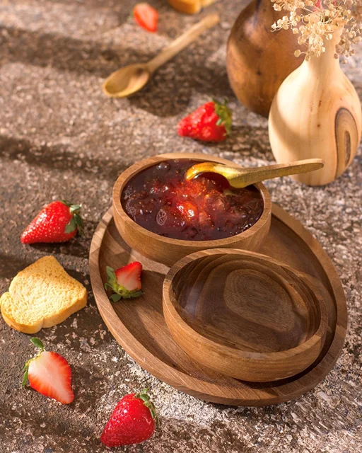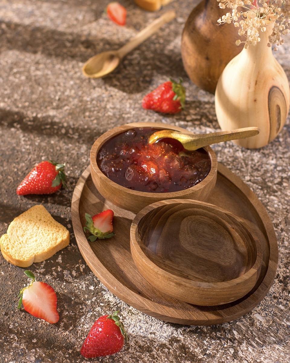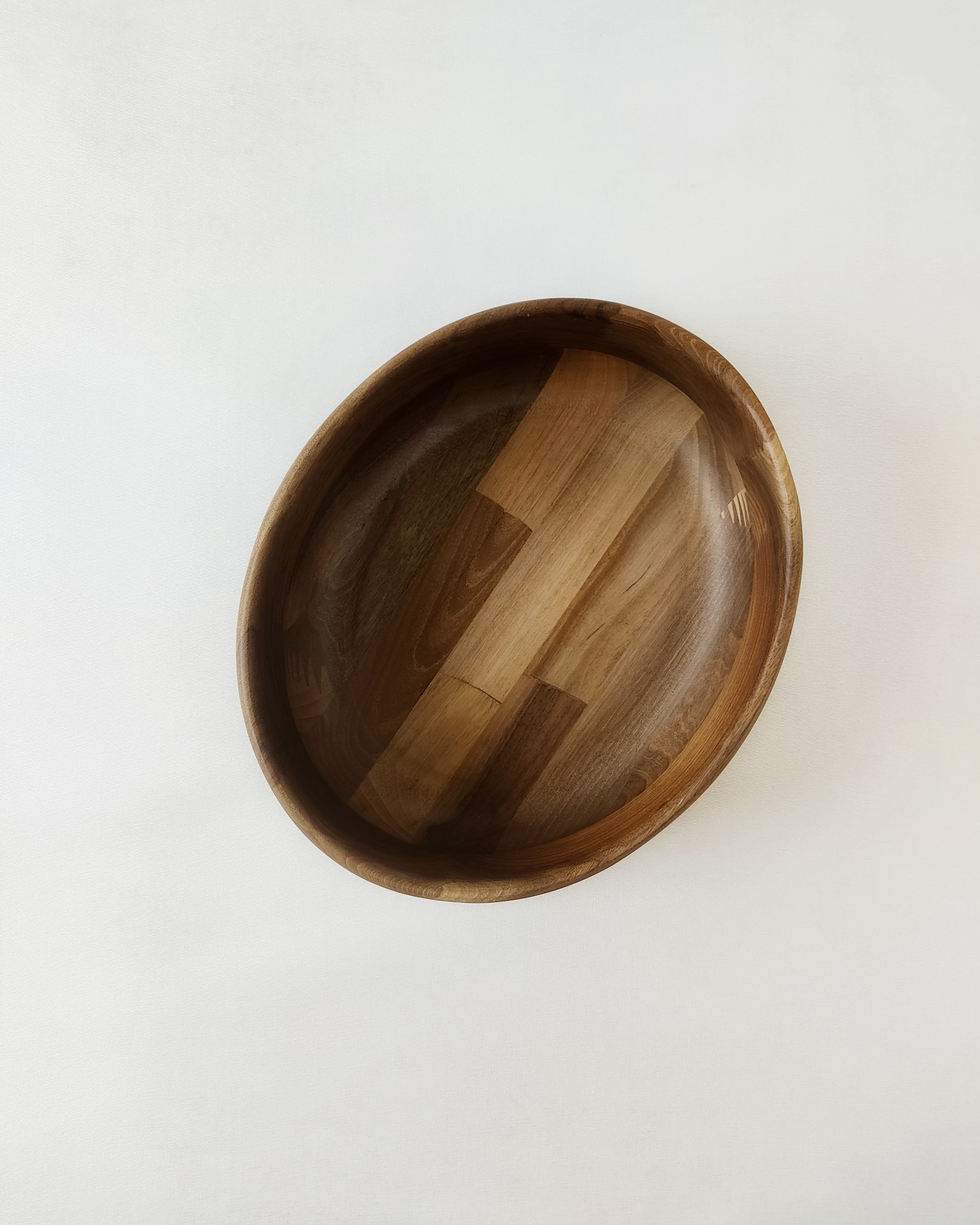 رنگ طبیعی چوب بدون هیچ افزودنی حفظ شده. روکش نهایی از پلیمر طبیعی و گیاهی استفاده شده که هم ایمن برای مواد غذاییست، هم کاسهها رو ضد آب و مقاوم در برابر لکه میکنه.