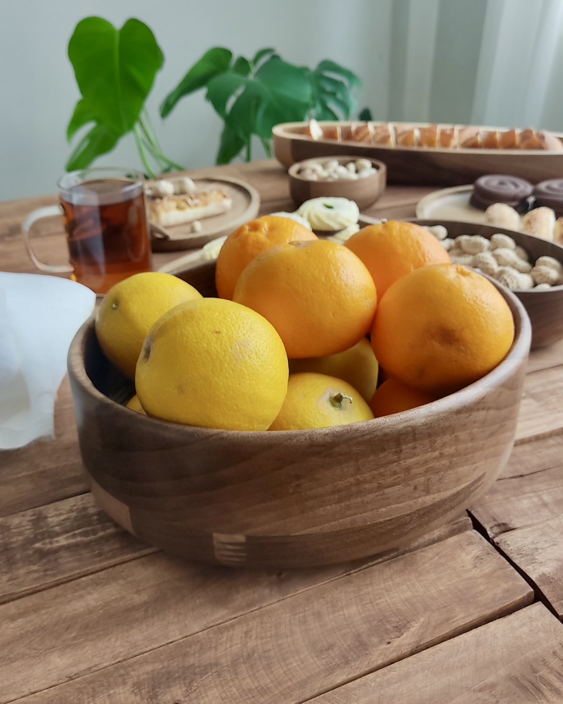 این کاسهها از چوب باکیفیت گردو ساخته شدن — چوبی با رنگ قهوهای تیره تا روشن، پر از رگههای چشمنواز و حس اصالت. هر کاسهاش منحصربهفرده، مثل امضای طبیعت روی میز پذیرایی تو.