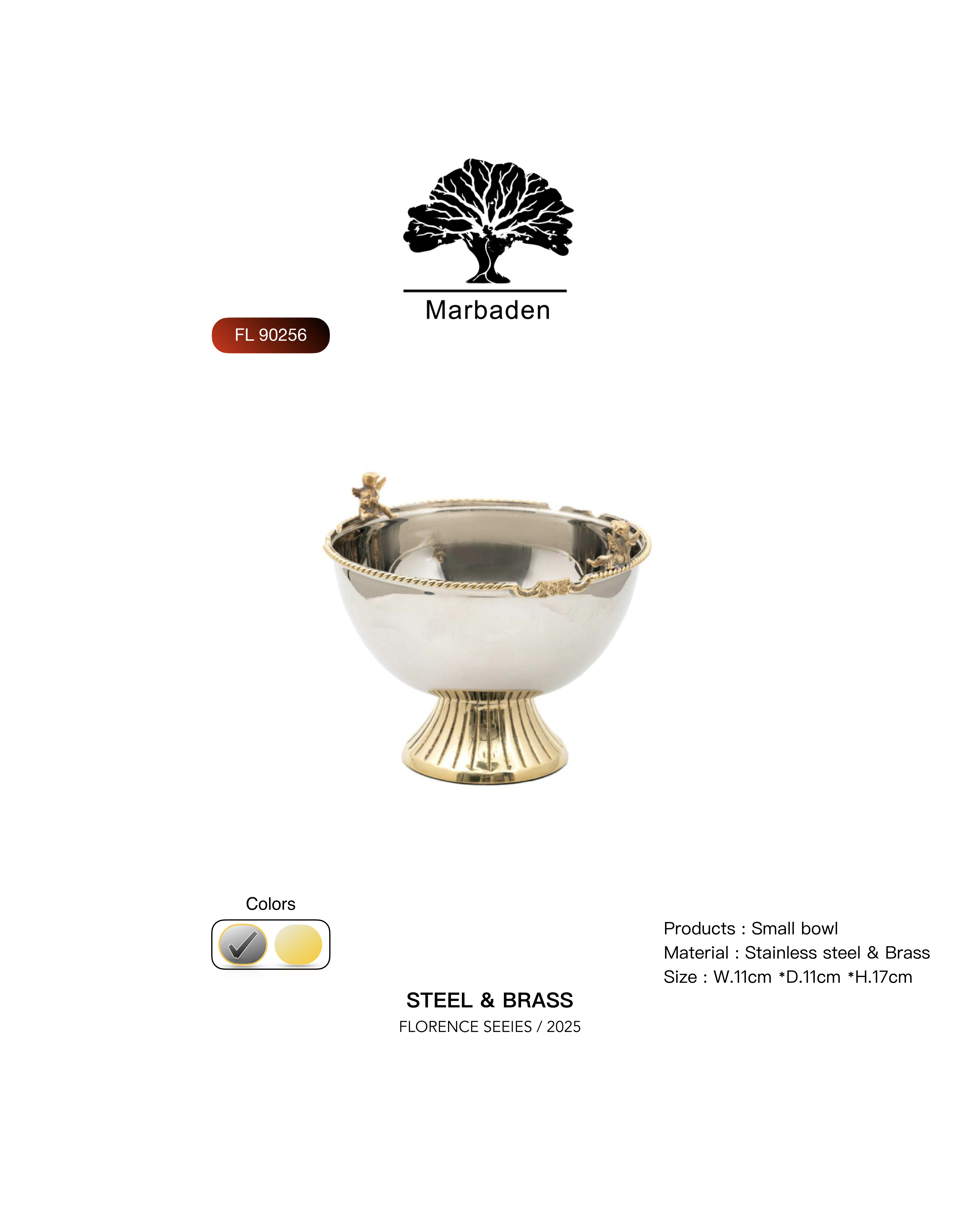 پیاله و پیش دستی تک برنجی فلورانس FL-90256 & FL-90257