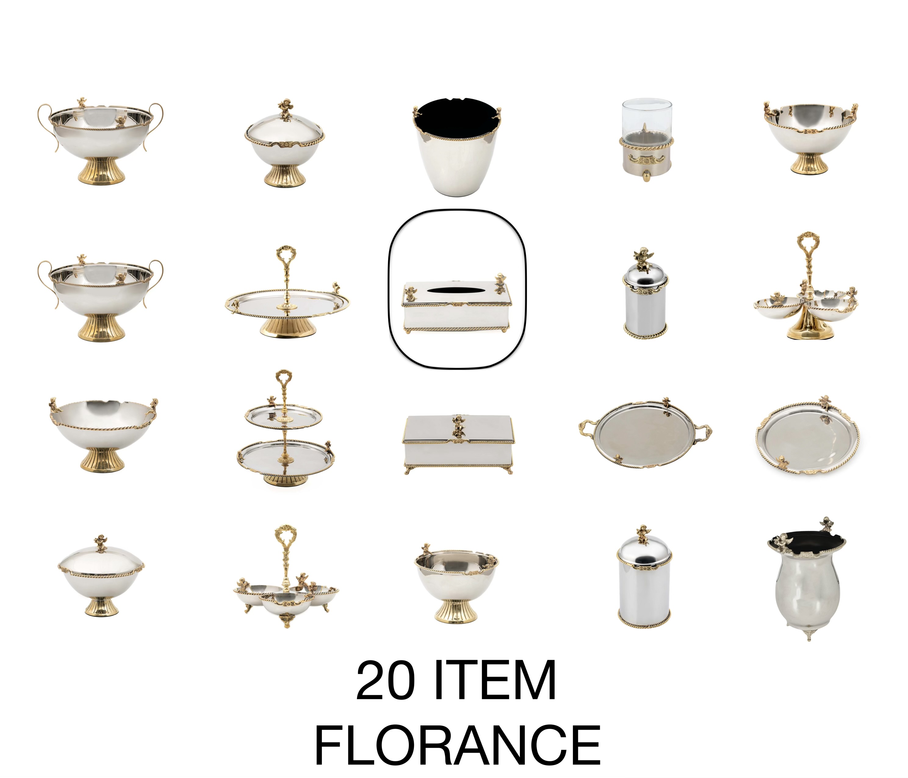 مجموعه فلورانس برنجی با 20 آیتم بینظیر، خاص ترین و باکیفیتترین مجموعه پذیرایی در ایران را ارائه میدهد.
