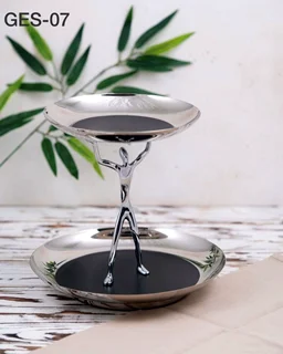 شیرینیخوری دو طبقه ژستو با تک آدمک یکی از خاصترین و شیکترین ظروف پذیرایی مجموعه ژستو است که با طراحی مدرن و خلاقانهاش، جلوهای متفاوت به میز پذیرایی میبخشد. این محصول علاوه بر کارایی در سرو شیرینی، شکلات و دسر، یک قطعه دکوراتیو هنری نیز محسوب میشود که ترکیب اصالت و زیبایی را به خانه شما میآورد.