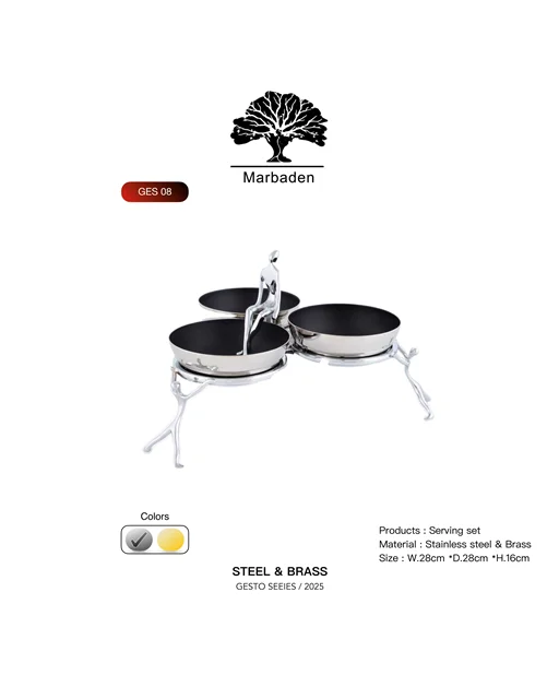 با اردو خوری سه پیاله ژستو GES-08، تجربهای منحصر به فرد و شیک را به میزبانی خود ببخشید. طراحی زیبا و کاربردی این محصول، ایدهآل برای سرو انواع پیشغذا، دسرها و سسهاست. با کیفیت ساخت بالا و ظرافت در جزئیات، این اردو خوری به فضای میز شما جلوهای خاص میبخشد و مهمانانتان را تحت تأثیر قرار میدهد. همین حالا سفارش دهید و جشنهایتان را به یادماندنی کنید!