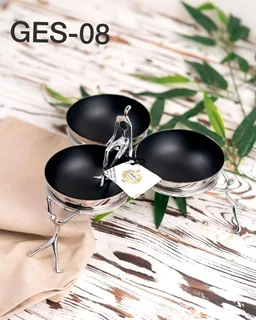 - ظرفیت سه پیاله برای سرو انواع تنقلات، آجیل، مزه و دسر