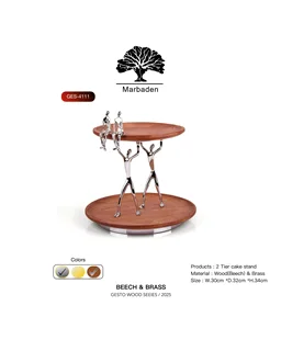 شیرینی خوری 2 طبقه گرد چوب و برنج ژستو طرح ادمک Ges-4111