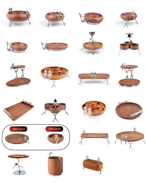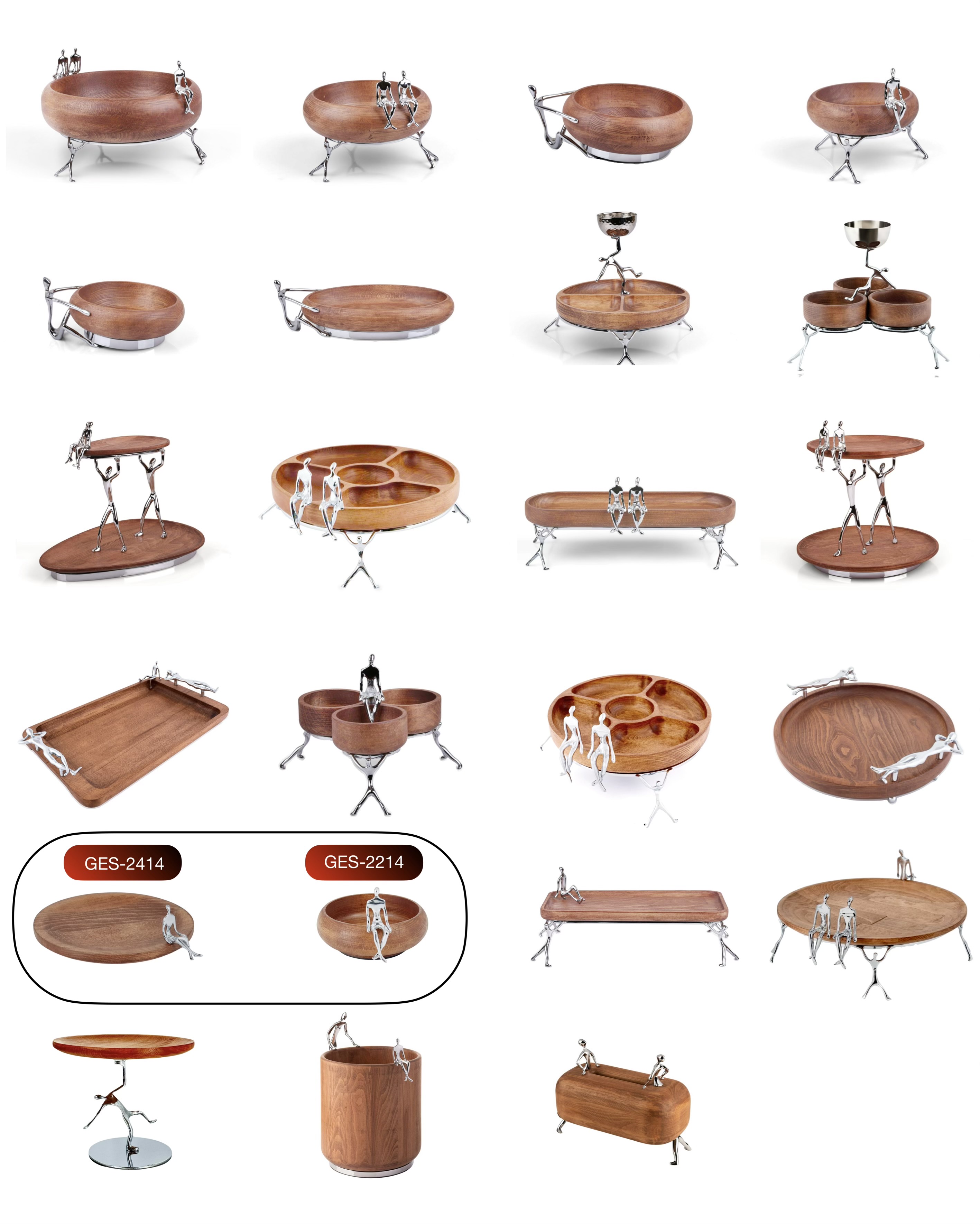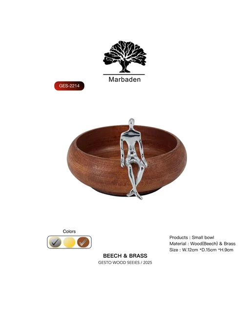 پیاله و پیش دستی چوب و برنج ژستو طرح ادمک Ges-2414-2214