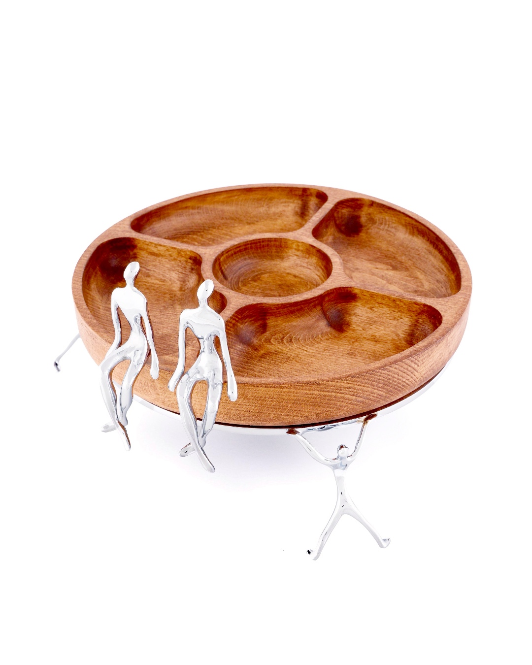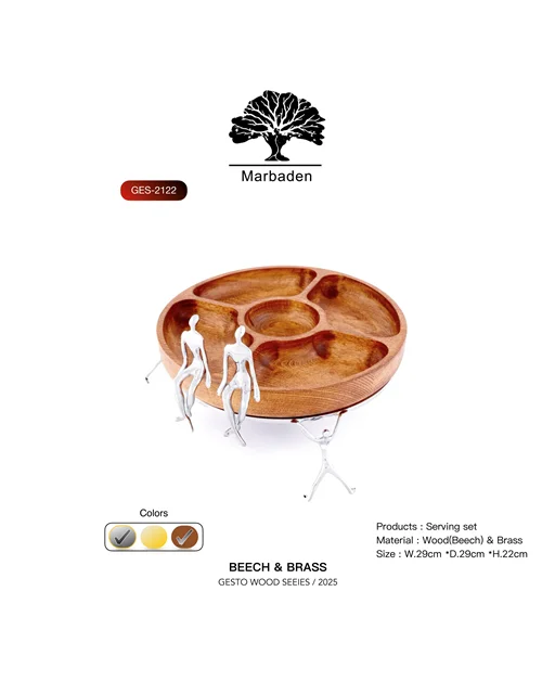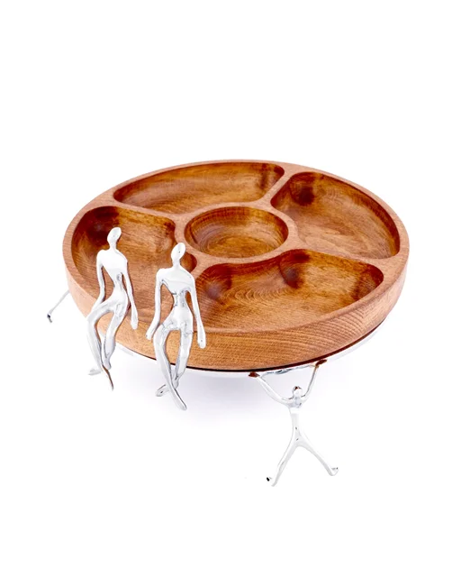 این اردوخوری خاص از چوب راش با رنگ فندقی ساخته شده و جلوهای لوکس به میز پذیرایی شما میبخشد. سه آدمک برنجی براق بهعنوان پایه و دو آدمک دیگر بهعنوان تزیین قرار گرفتهاند که ترکیبی هنری و چشمنواز ایجاد میکند. انتخابی فوقالعاده برای جهیزیه عروس و پذیراییهای خاص.
