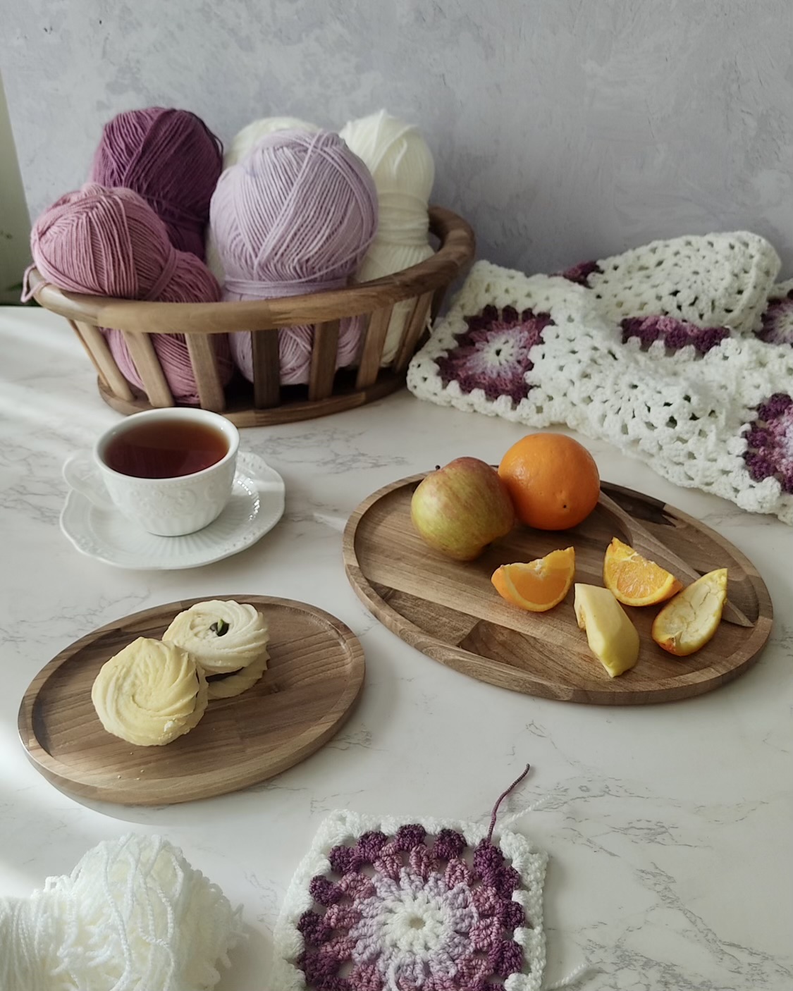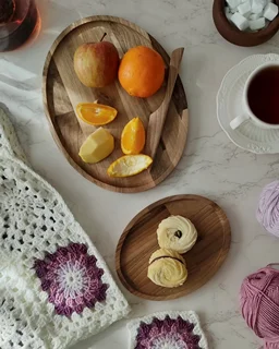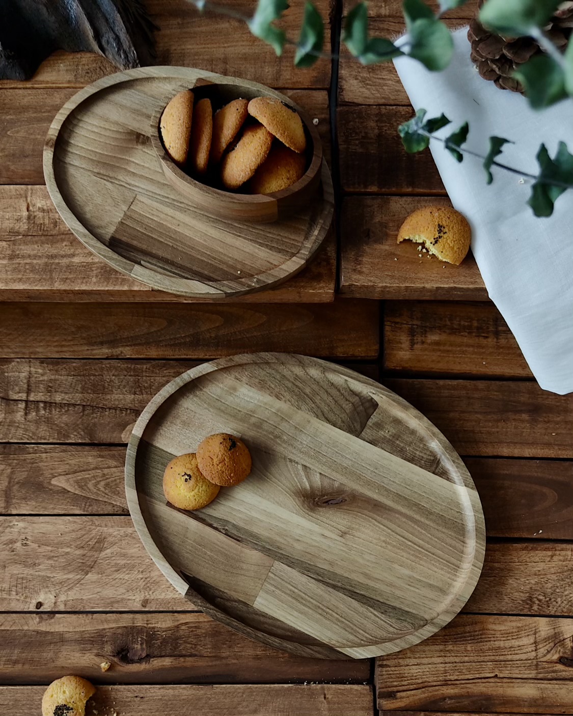 فرم بیضی این بشقابها با دستگاه CNC به دقت تراشیده شده تا شکل منظم، متقارن و خوشدستی داشته باشند. اما چیزی که حس واقعی دستساز بودن را منتقل میکند، پرداخت نهایی و روغنکاری دستی است — یعنی سطح صیقلی، لبههای نرم و حس لطیفی که زیر انگشتانت حس میکنی، نتیجهی هنر و ظرافت یک صنعتگر است.