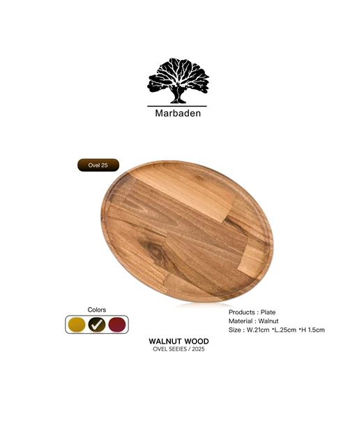 این بشقابهای مدل بیضی از چوب گردوی طبیعی ساخته شدهاند — چوبی با رنگهای گرم و عمیق، با رگههای زیبا و روشن که چشم را مجذوب میکند و بافتی مستحکم و مقاوم دارد. گردو همیشه بین هنردوستان و دکوراتورها به خاطر کیفیت و زیبایی منحصربهفردش محبوب است. این چوب نه تنها جلوهای خاص دارد، بلکه نشاندهندهی اصالت و دوام نیز هست.