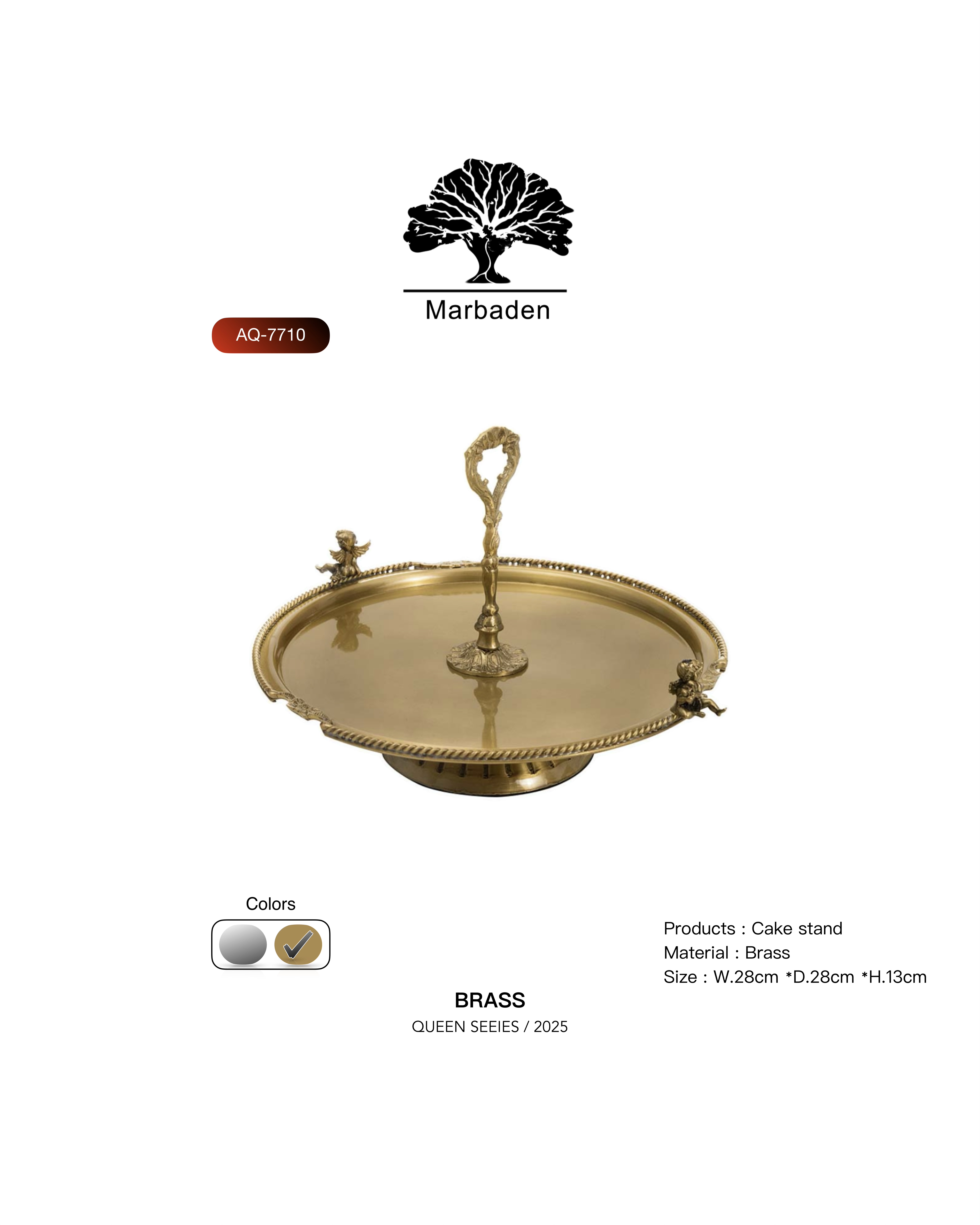 شیرینی خوری تک طبقه ، پایه دار کویین برنجی طلایی AQ-7710