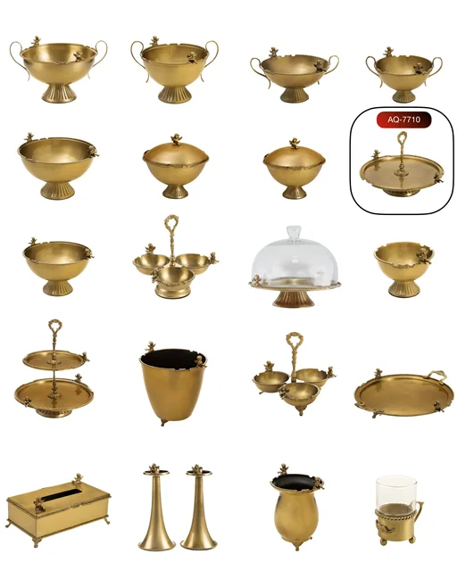 کالکشن کامل پذیرایی برنجی کویین طلایی با 21 آیتم خاص و ارزشمند، ترکیبی از اصالت و زیبایی است که در ایران با بالاترین کیفیت ارائه میشود.