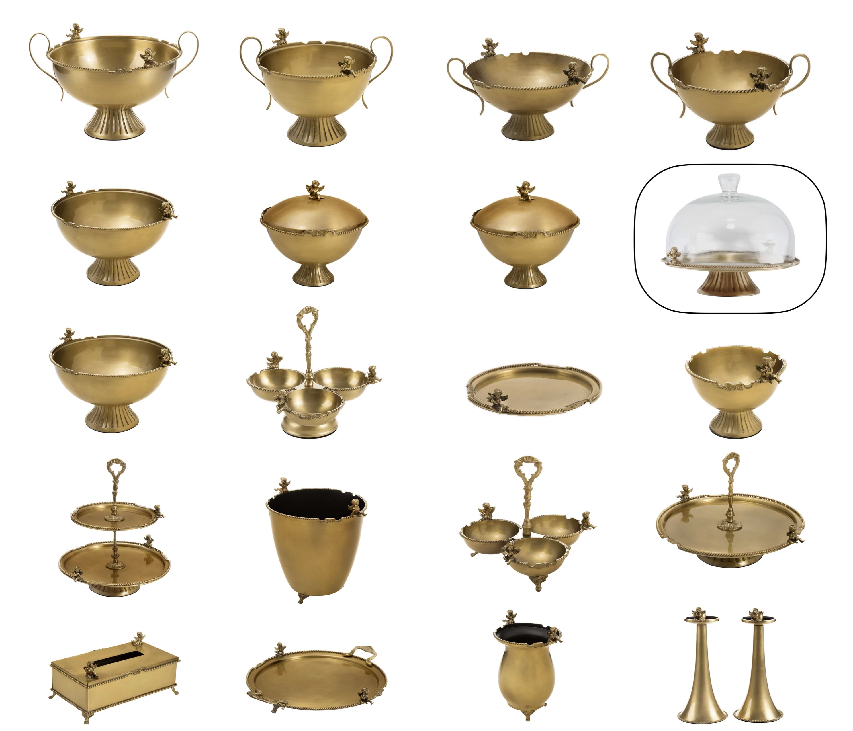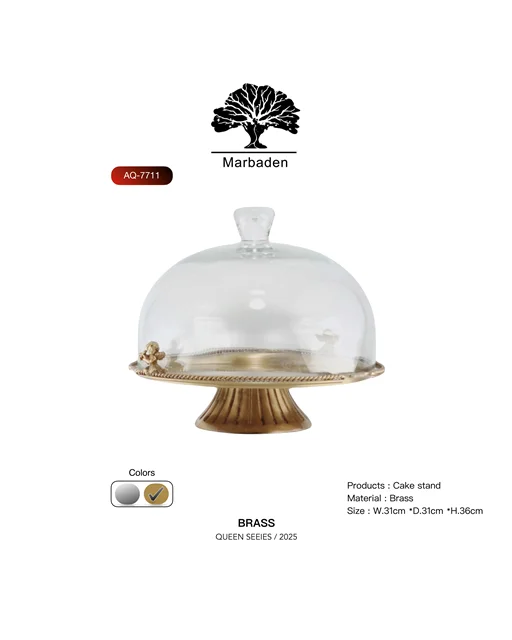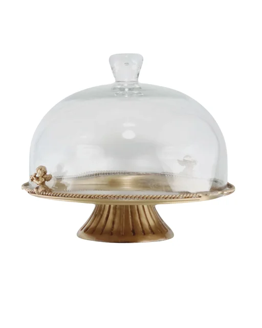 کیک خوری با درب پیرکس ، پایه دار کویین برنجی طلایی AQ-7711