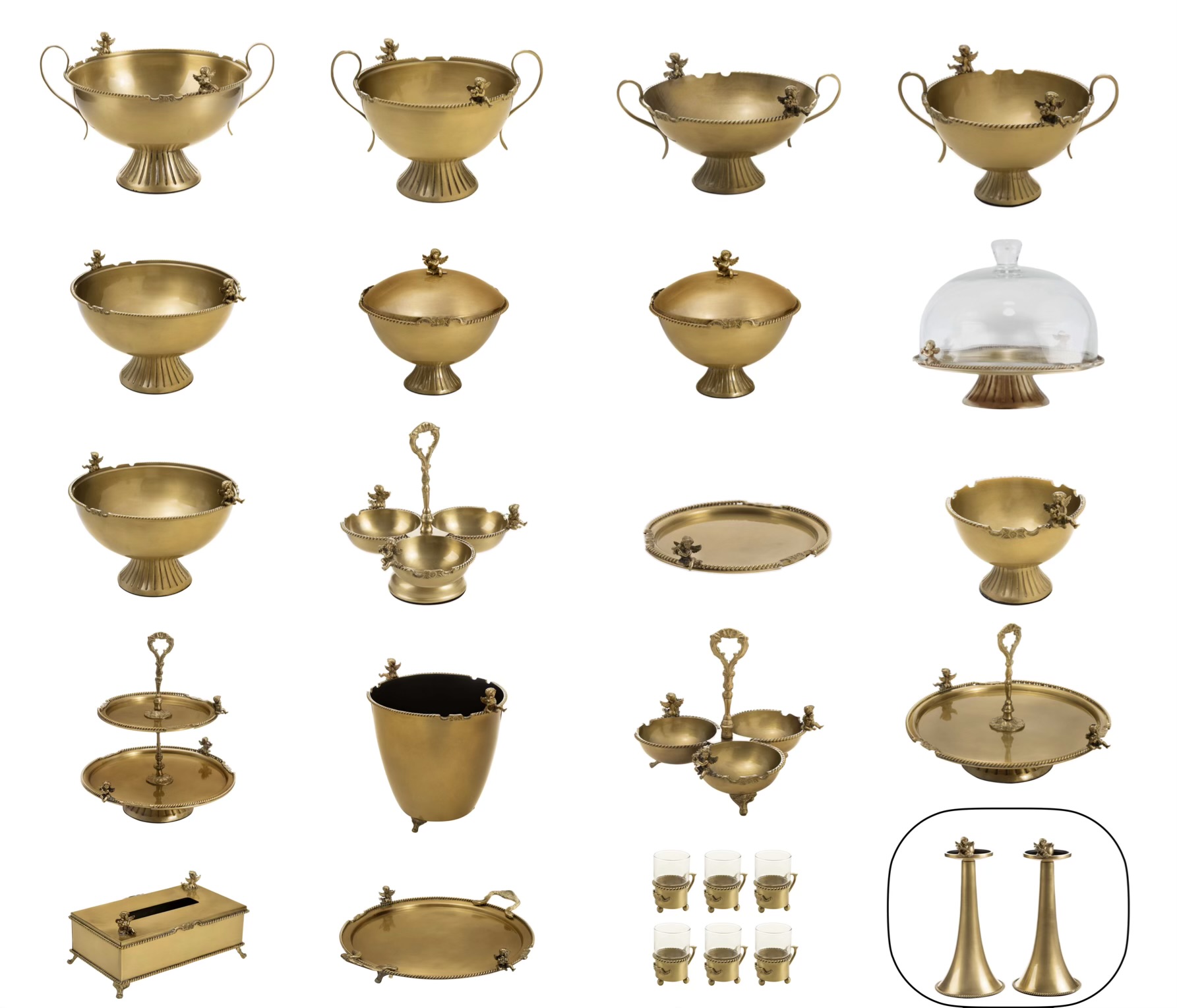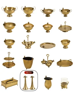 کالکشن کامل پذیرایی برنجی کویین طلایی با 21 آیتم خاص و ارزشمند، ترکیبی از اصالت و زیبایی است که در ایران با بالاترین کیفیت ارائه میشود.