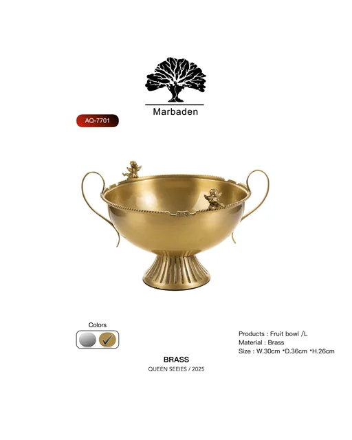 این میوهخوری لوکس با بدنهی برنجی مرغوب و طلایی، پایه و دستگیرهی مقاوم، به همراه فرشتههای کوچک برنجی برای تزئین، جلوهای شاهانه و چشمنواز به میز پذیرایی شما میبخشد.