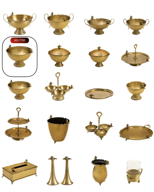 کالکشن کامل پذیرایی برنجی کویین طلایی با 21 آیتم خاص و ارزشمند، ترکیبی از اصالت و زیبایی است که در ایران با بالاترین کیفیت ارائه میشود.