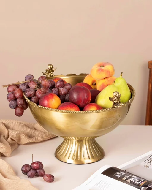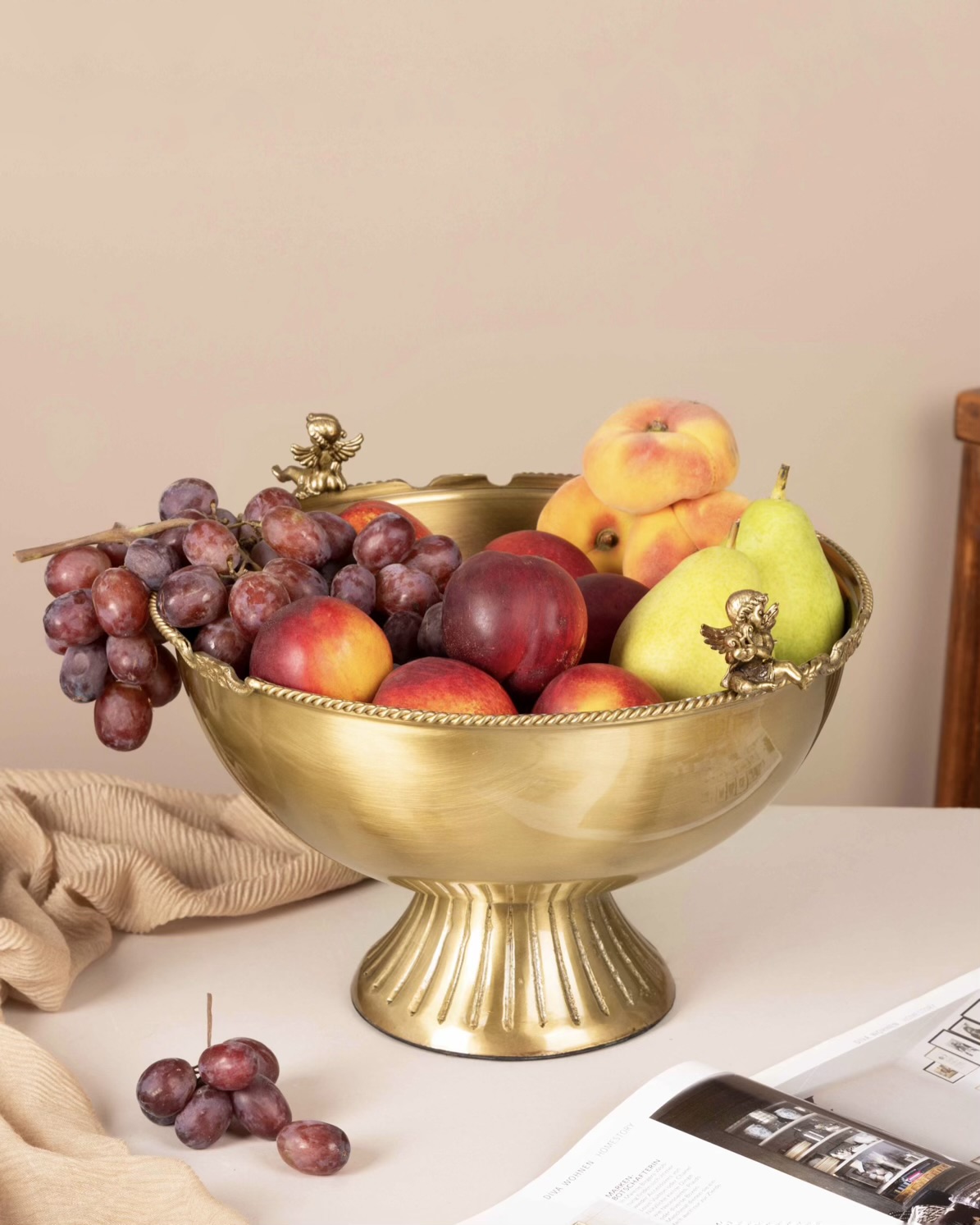 این میوهخوری لوکس با پایهی مقاوم و فرشتههای ظریف برنجی برای تزئین، انتخابی ایدهآل برای میز پذیرایی و جهیزیه عروس است.