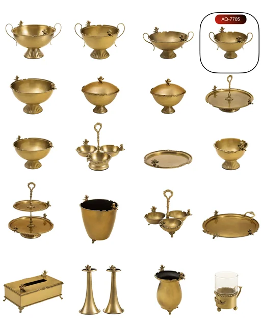 کالکشن کامل پذیرایی برنجی کویین طلایی با 21 آیتم خاص و ارزشمند، ترکیبی از اصالت و زیبایی است که در ایران با بالاترین کیفیت ارائه میشود.