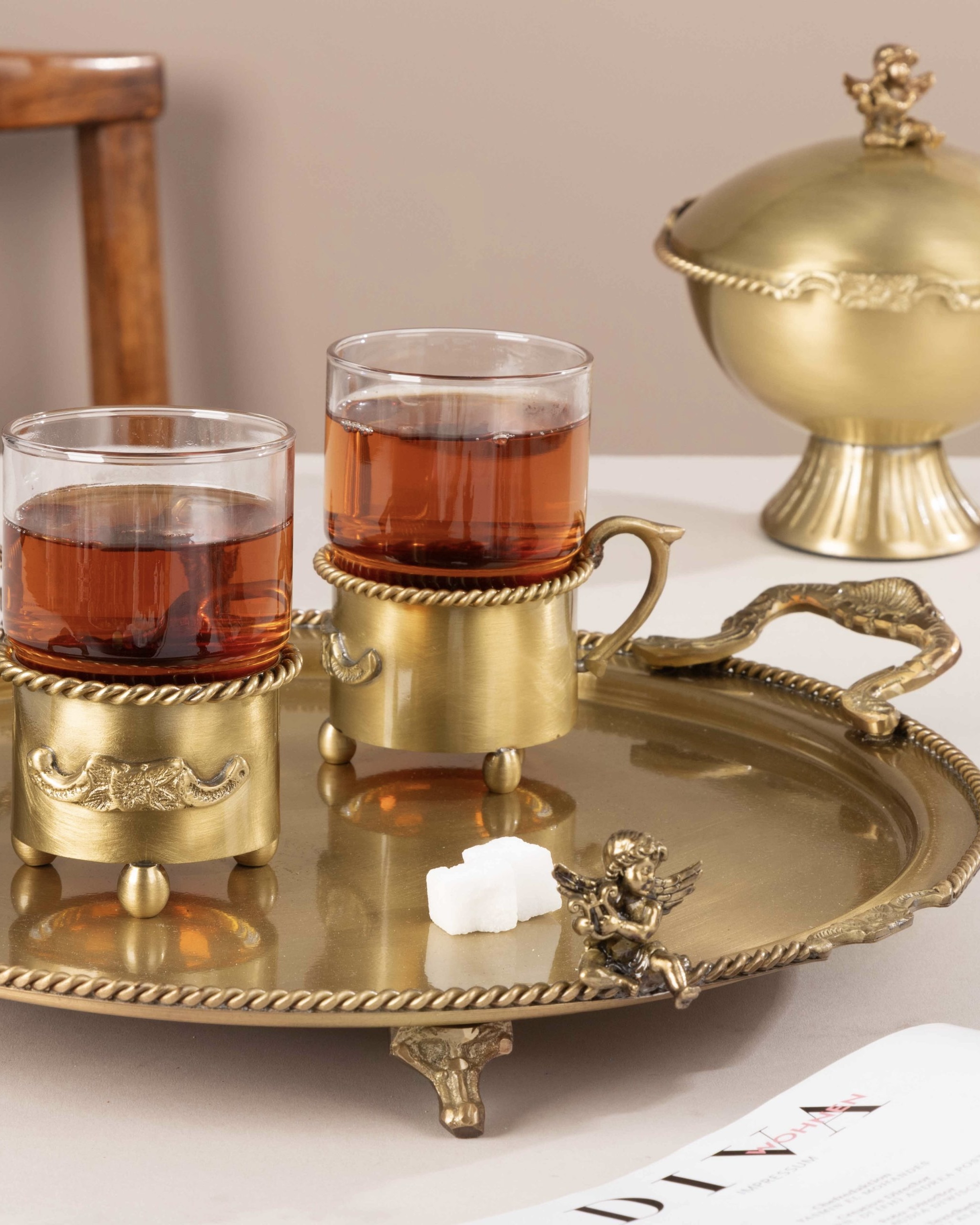 •ترکیب درخشش طلایی برنج با شفافیت لیوان پیرکس
