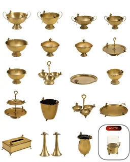 کالکشن کامل پذیرایی برنجی کویین طلایی با 21 آیتم خاص و ارزشمند، ترکیبی از اصالت و زیبایی است که در ایران با بالاترین کیفیت ارائه میشود.