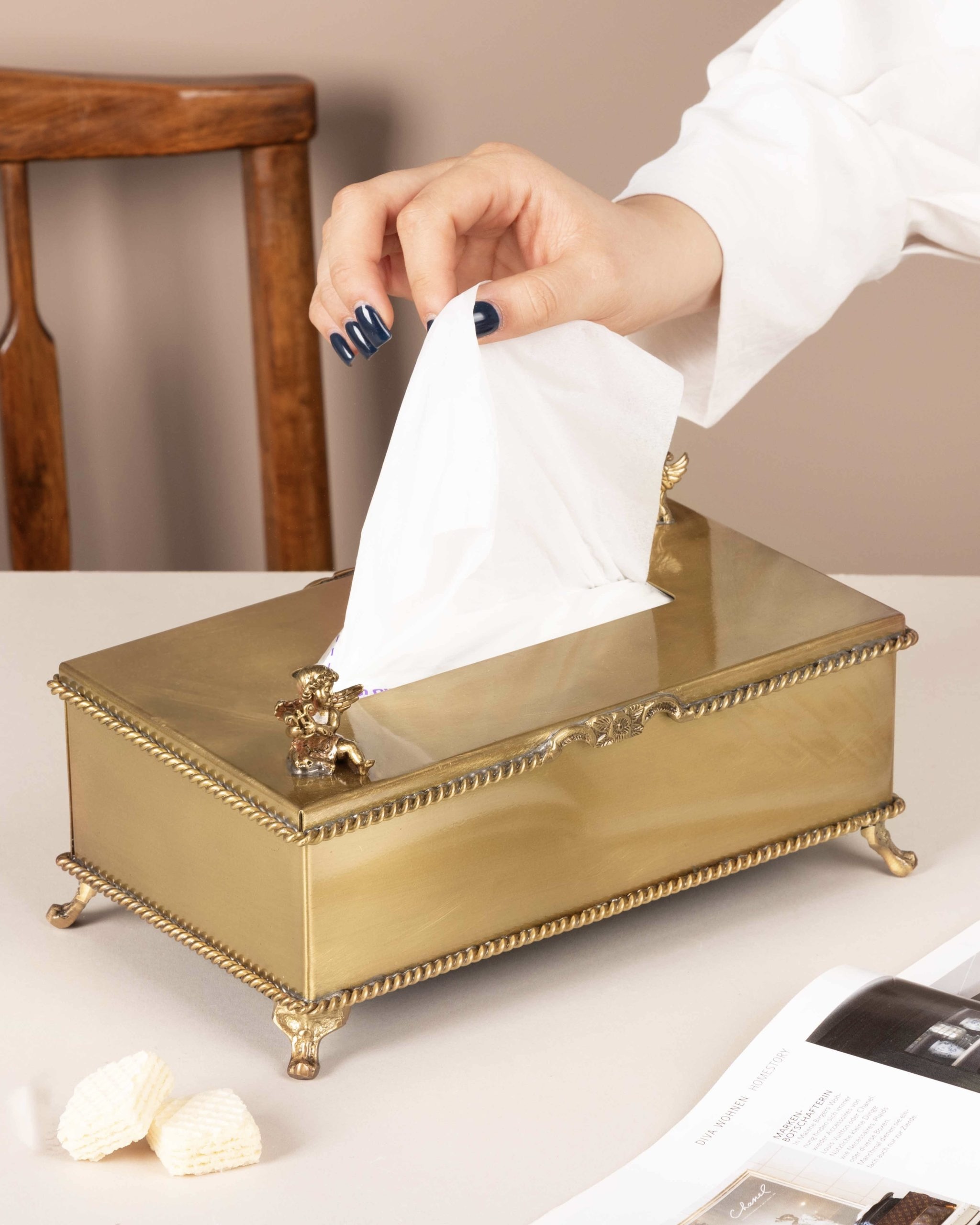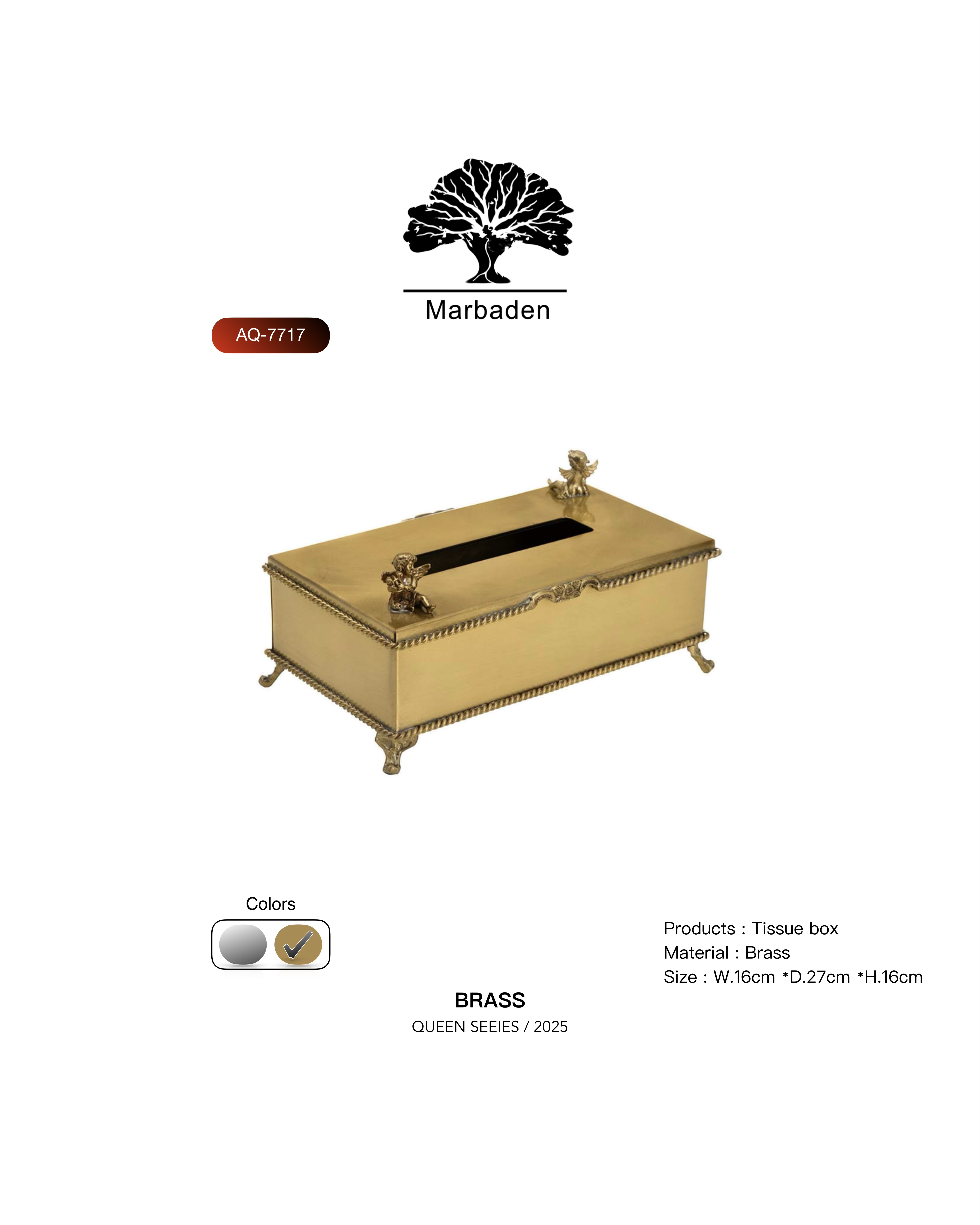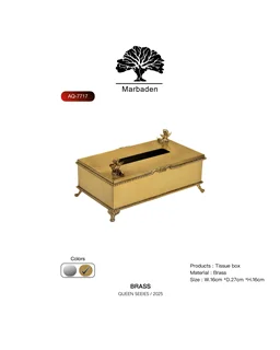 جای دستمال پذیرایی کویین، جلوهای لوکس و اصیل از هنر برنجکاری ایرانی است. این محصول با بدنه طلایی براق و تزئینات ظریف نمادهای کلاسیک برنجی، انتخابی خاص و ارزشمند برای میز پذیرایی و جهیزیه عروس به شمار میرود.