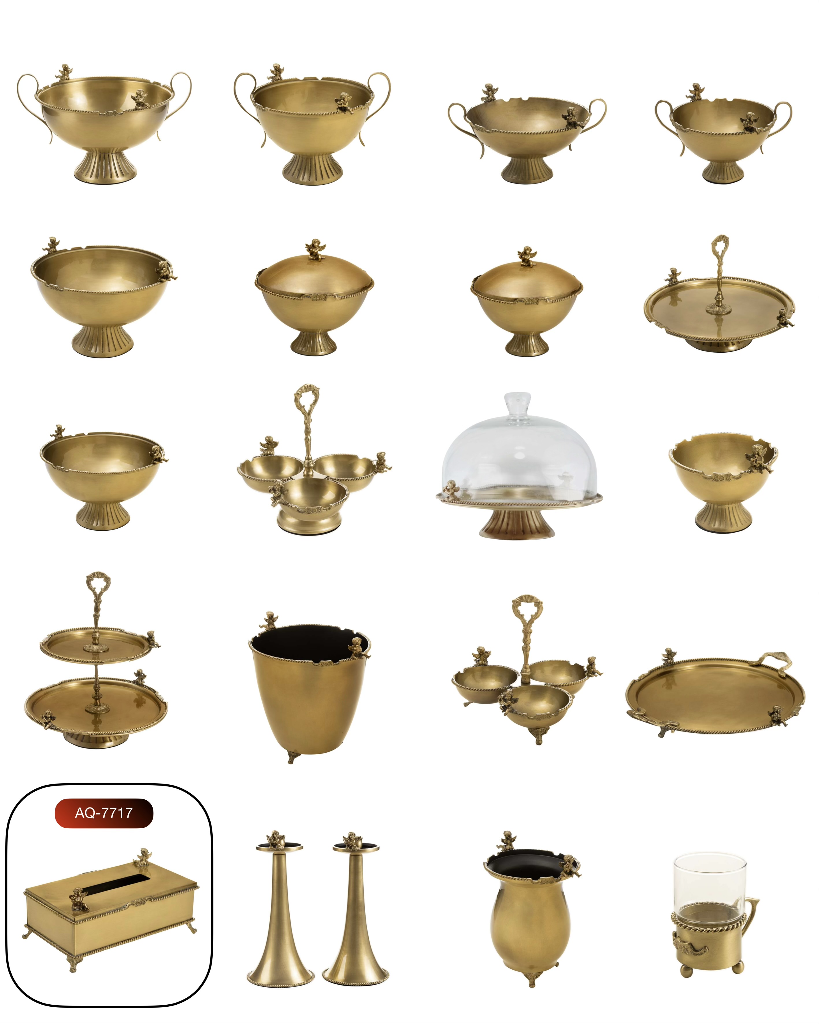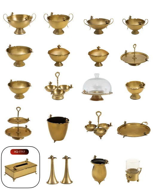 کالکشن کامل پذیرایی برنجی کویین طلایی با 21 آیتم خاص و ارزشمند، ترکیبی از اصالت و زیبایی است که در ایران با بالاترین کیفیت ارائه میشود.