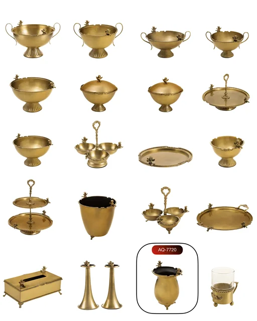 کالکشن کامل پذیرایی برنجی کویین طلایی با 21 آیتم خاص و ارزشمند، ترکیبی از اصالت و زیبایی است که در ایران با بالاترین کیفیت ارائه میشود.