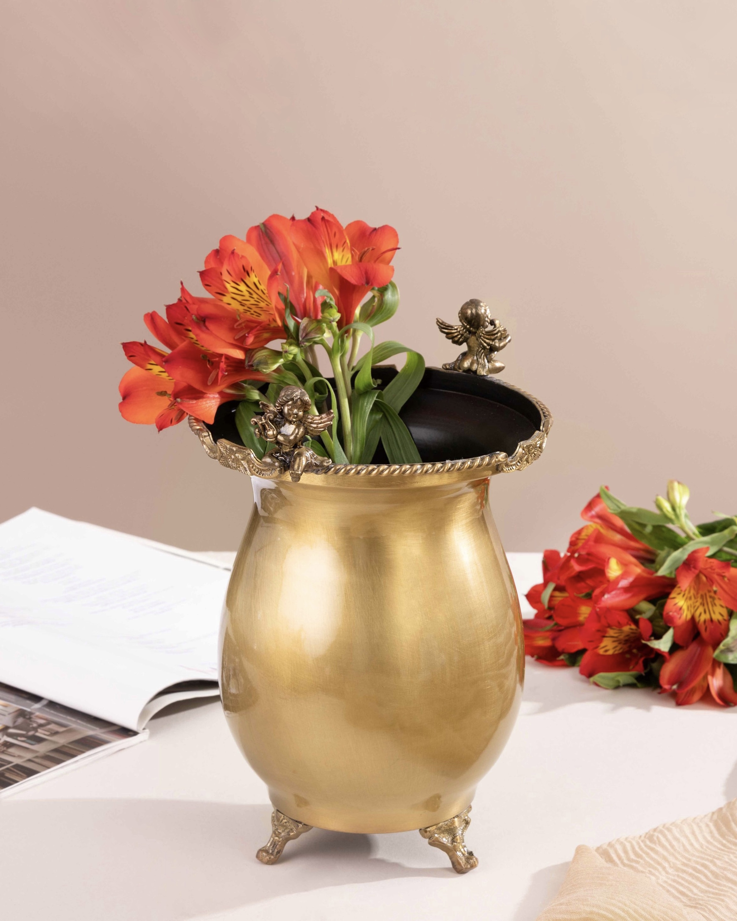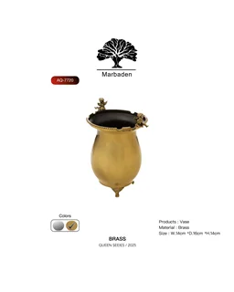 گلدان دکوری برنجی کویین با بدنهای صیقلی و جزئیات ظریف برنجی، انتخابی خاص برای دکوراسیون لاکچری و پذیراییهای مجلل است.