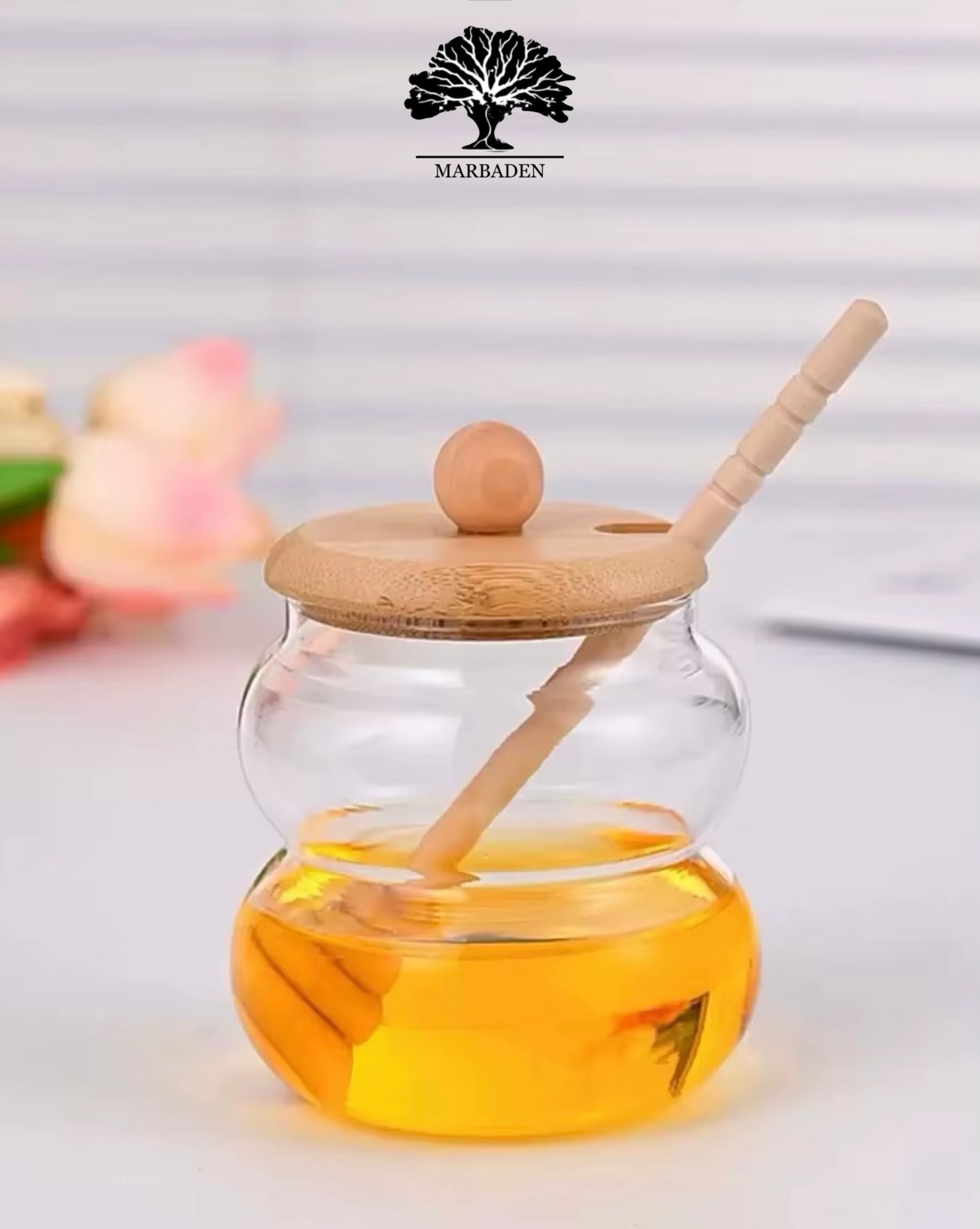 عسلخوری پیرکس با طراحی مینیمال و شیک، انتخابی ایدهآل برای سرو عسل، مربا و انواع شیره در میز صبحانه و پذیرایی است.