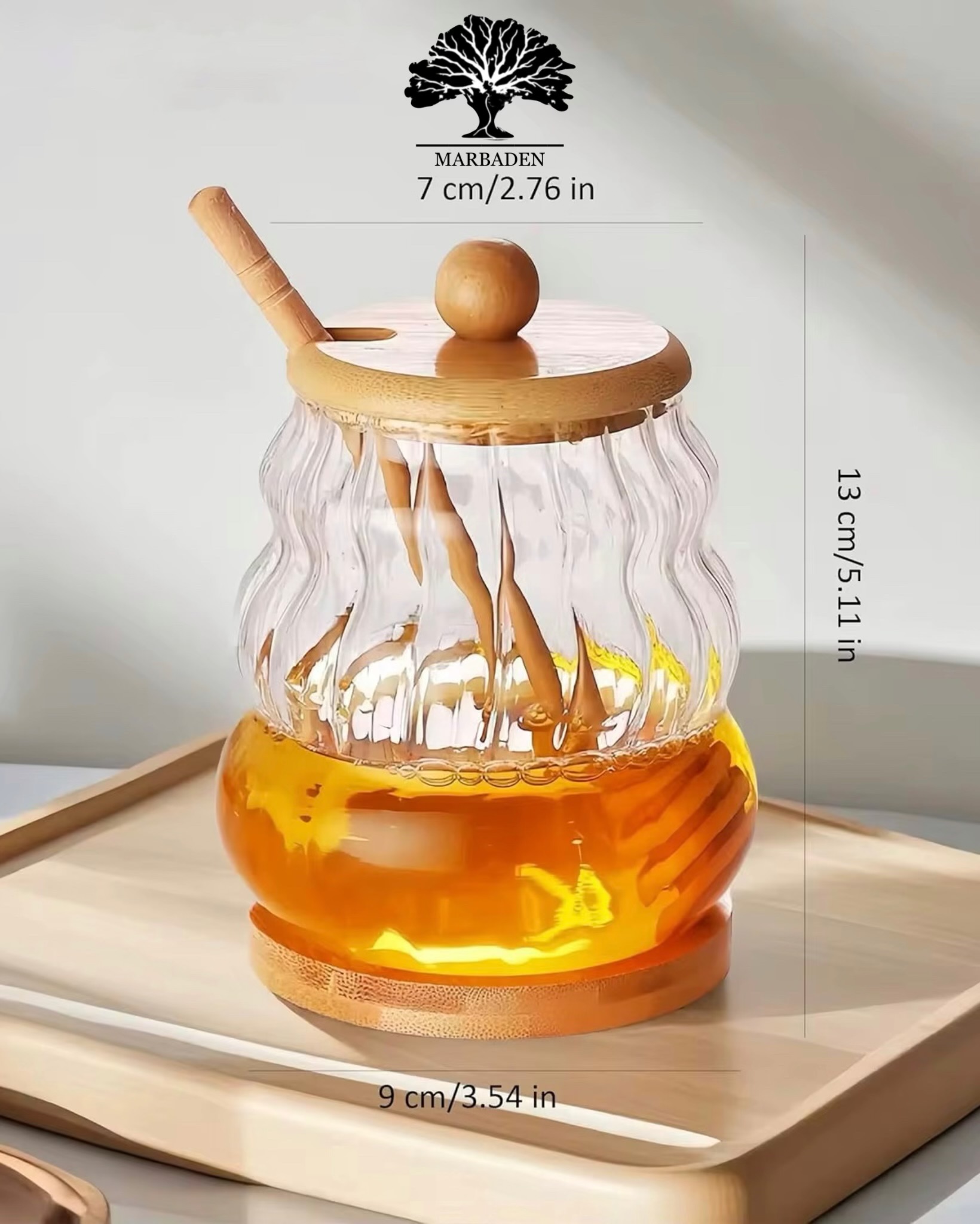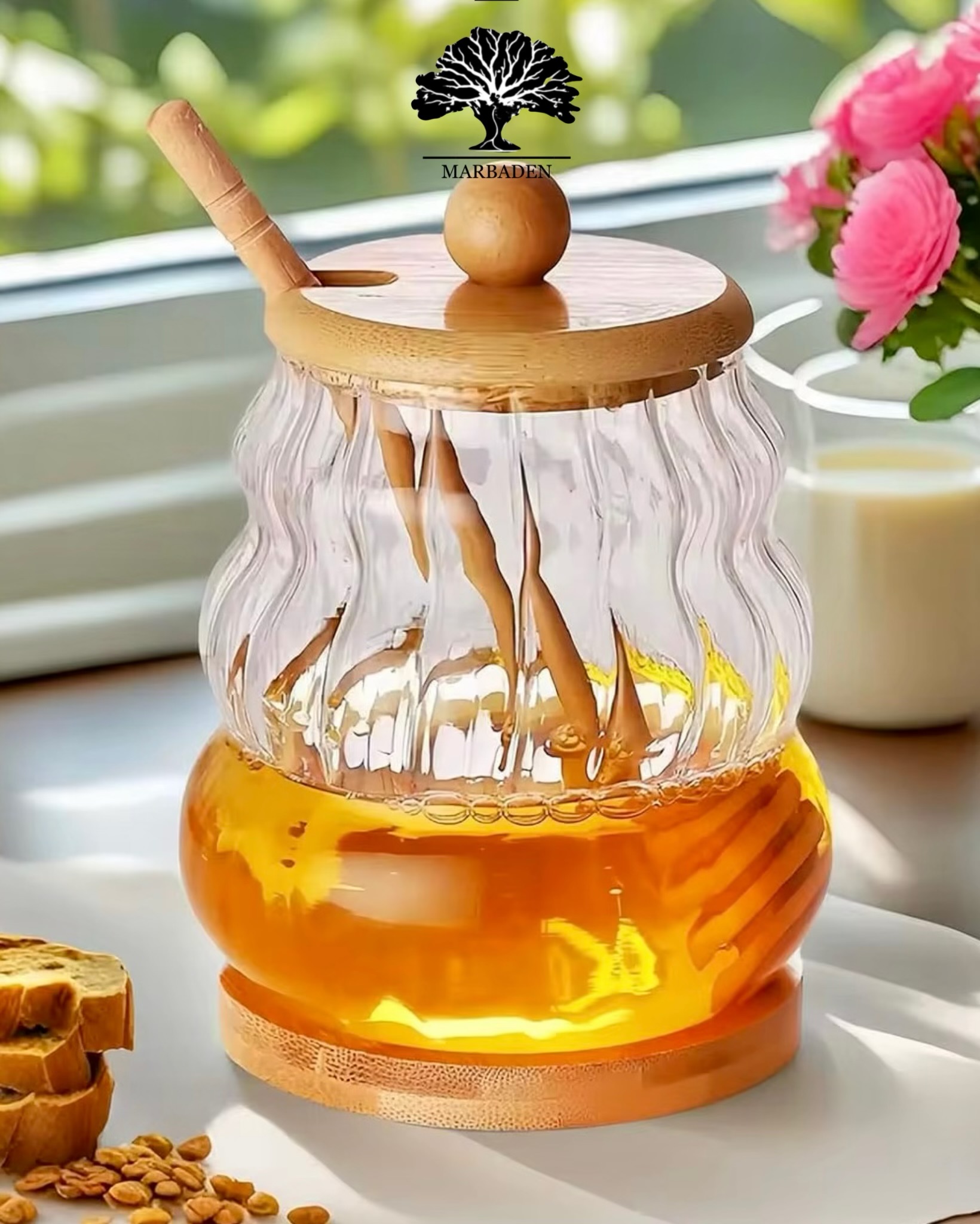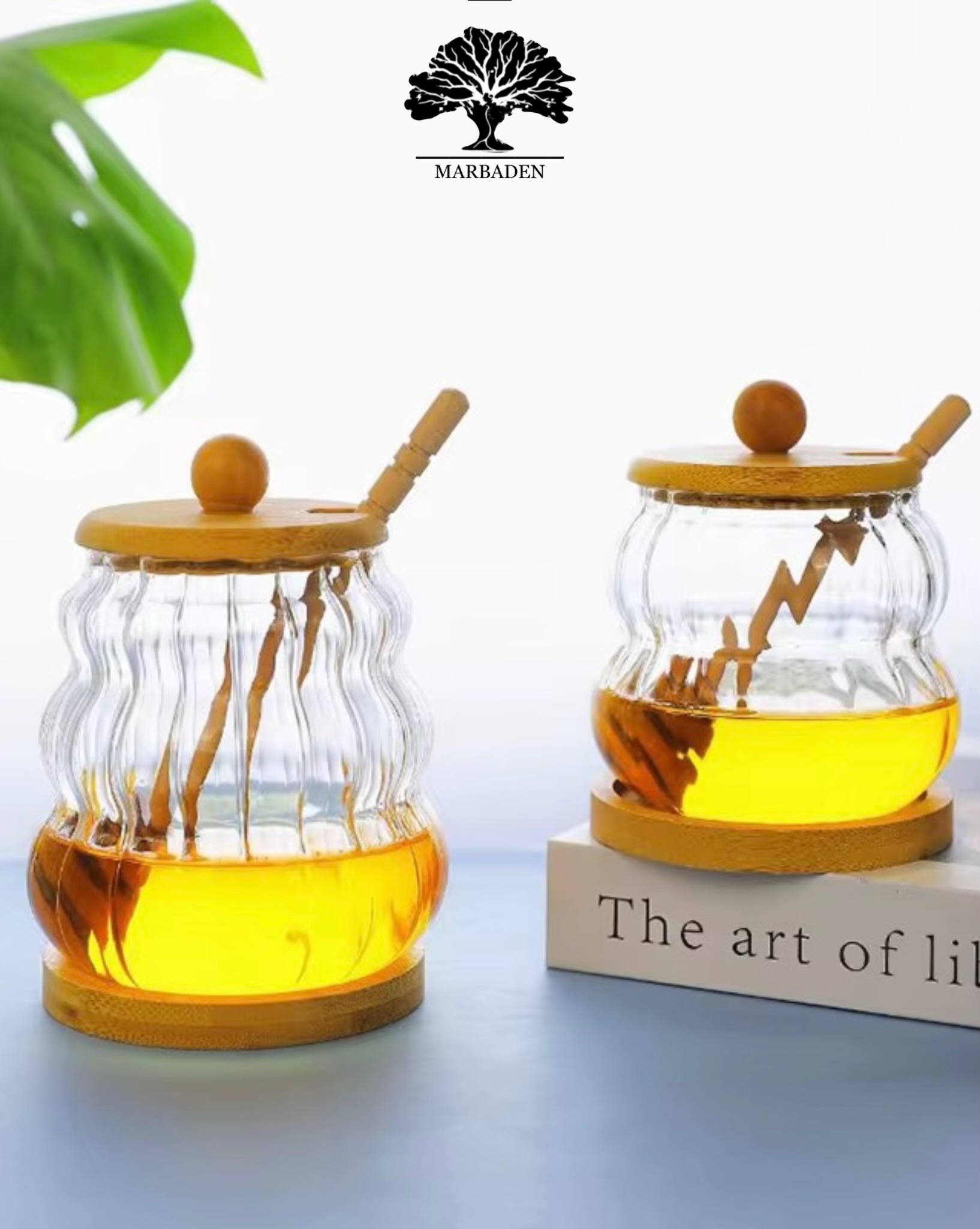 شیشه کاملاً شفاف و بیرنگ بوده و رنگ طبیعی عسل را به زیبایی نمایش میدهد.