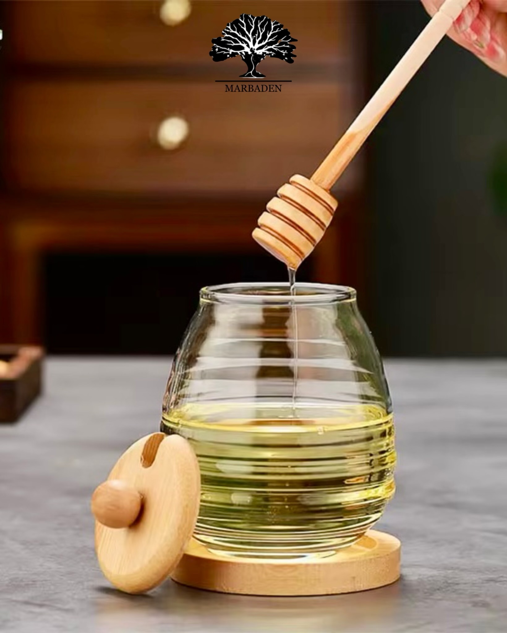 عسل خوری پیرکس خمره ای درب بامبو MP-1704b
