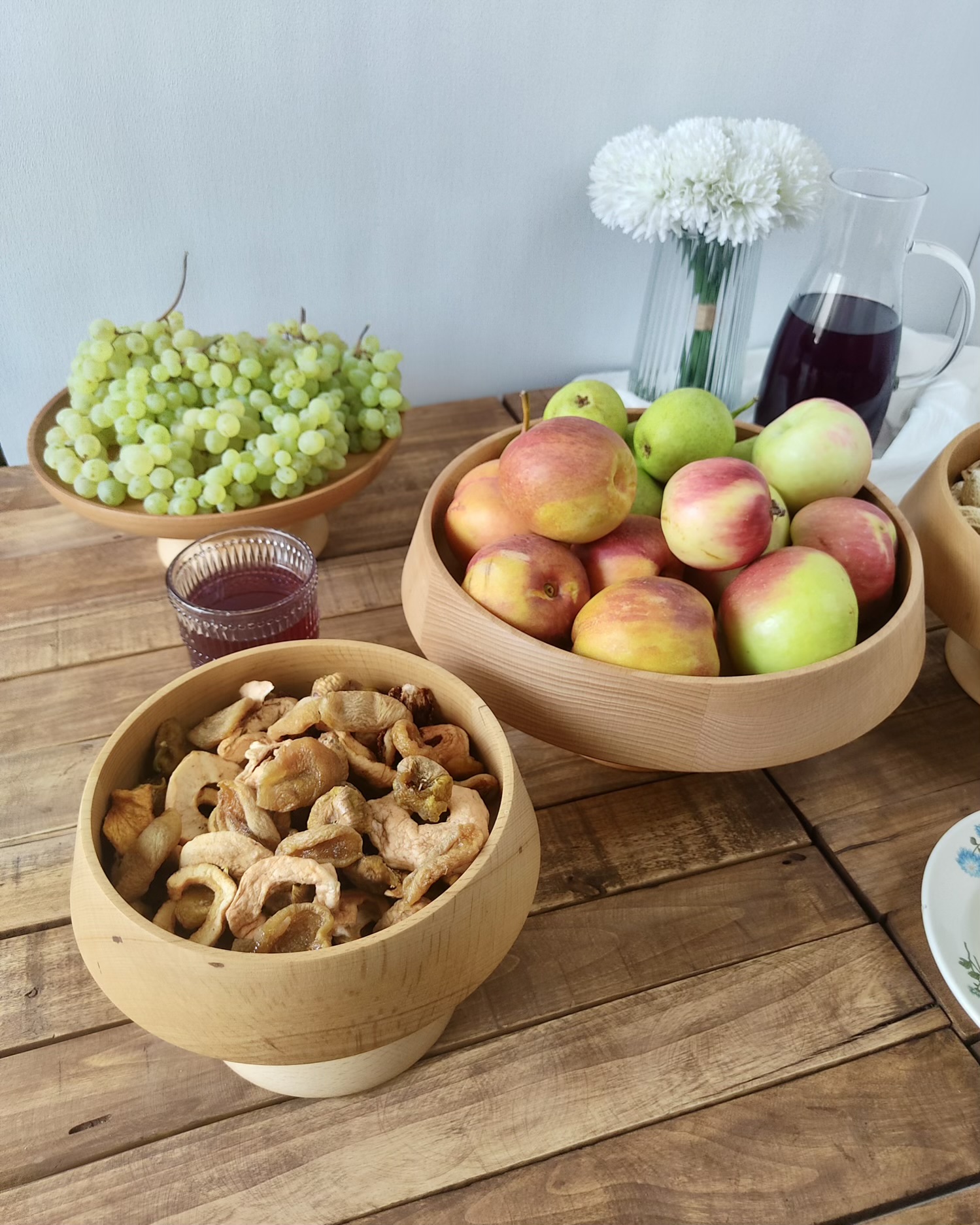 تمامی قطعات با دقت و ظرافت نجاران ماهر ساخته شدهاند. لبهها کاملاً نرم و صیقلی هستند و روغنکاری با مواد طبیعی باعث میشود استفاده از آنها برای سرو خوراکی، سالم و بیخطر باشد.