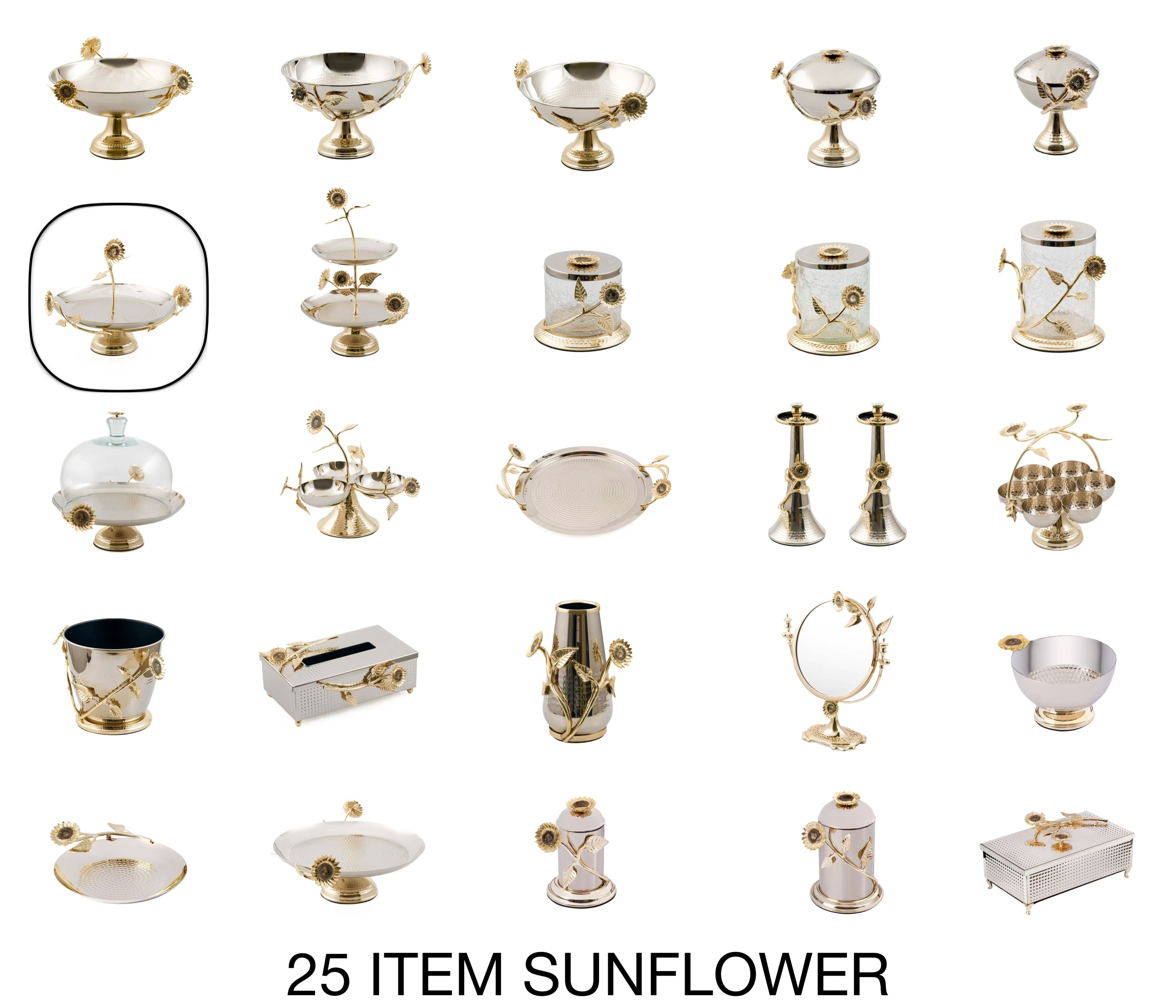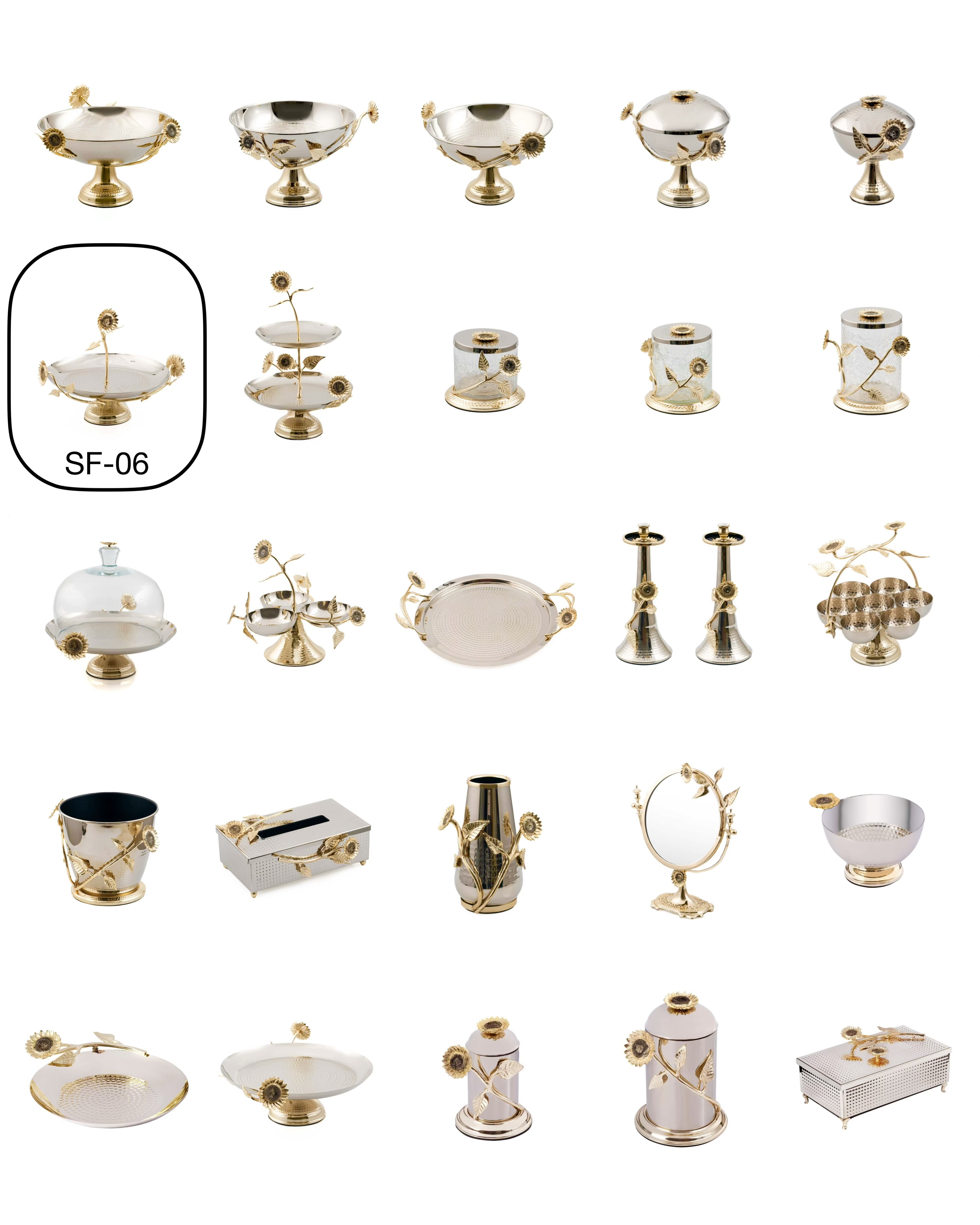 مجموعه Sunflower برنجی با 25 آیتم طرح گل آفتابگردان ، باکیفیتترین و جذابترین پذیرایی در ایران را ارائه میدهد.