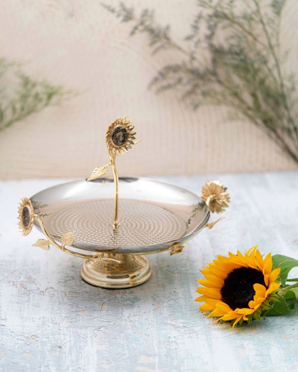 شیرینی خوری پایه دار برنجی گل آفتابگردان SF-06