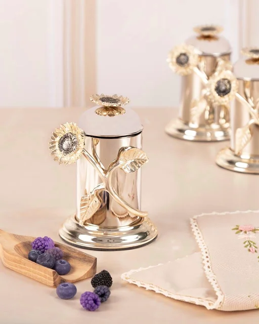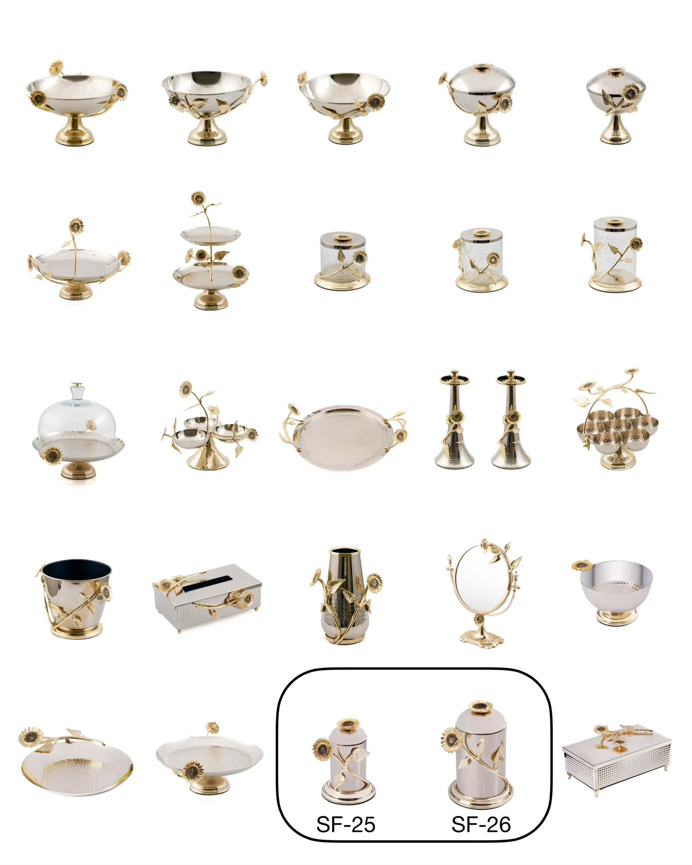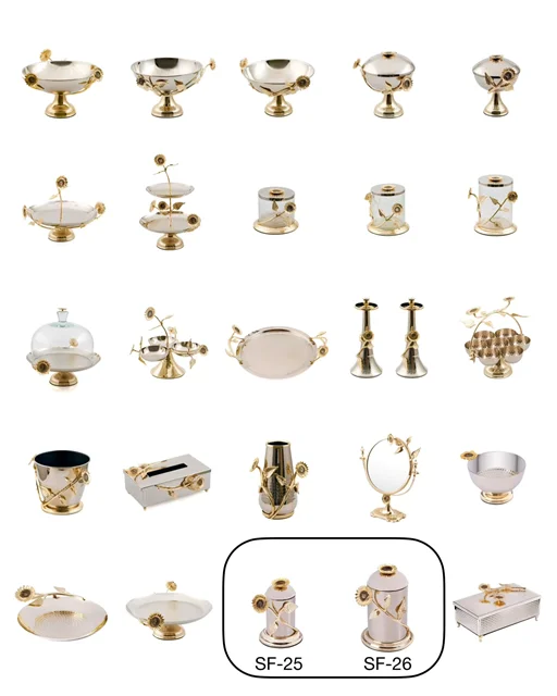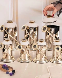مجموعه Sunflower برنجی با 25 آیتم طرح گل آفتابگردان ، باکیفیتترین و جذابترین پذیرایی در ایران را ارائه میدهد.