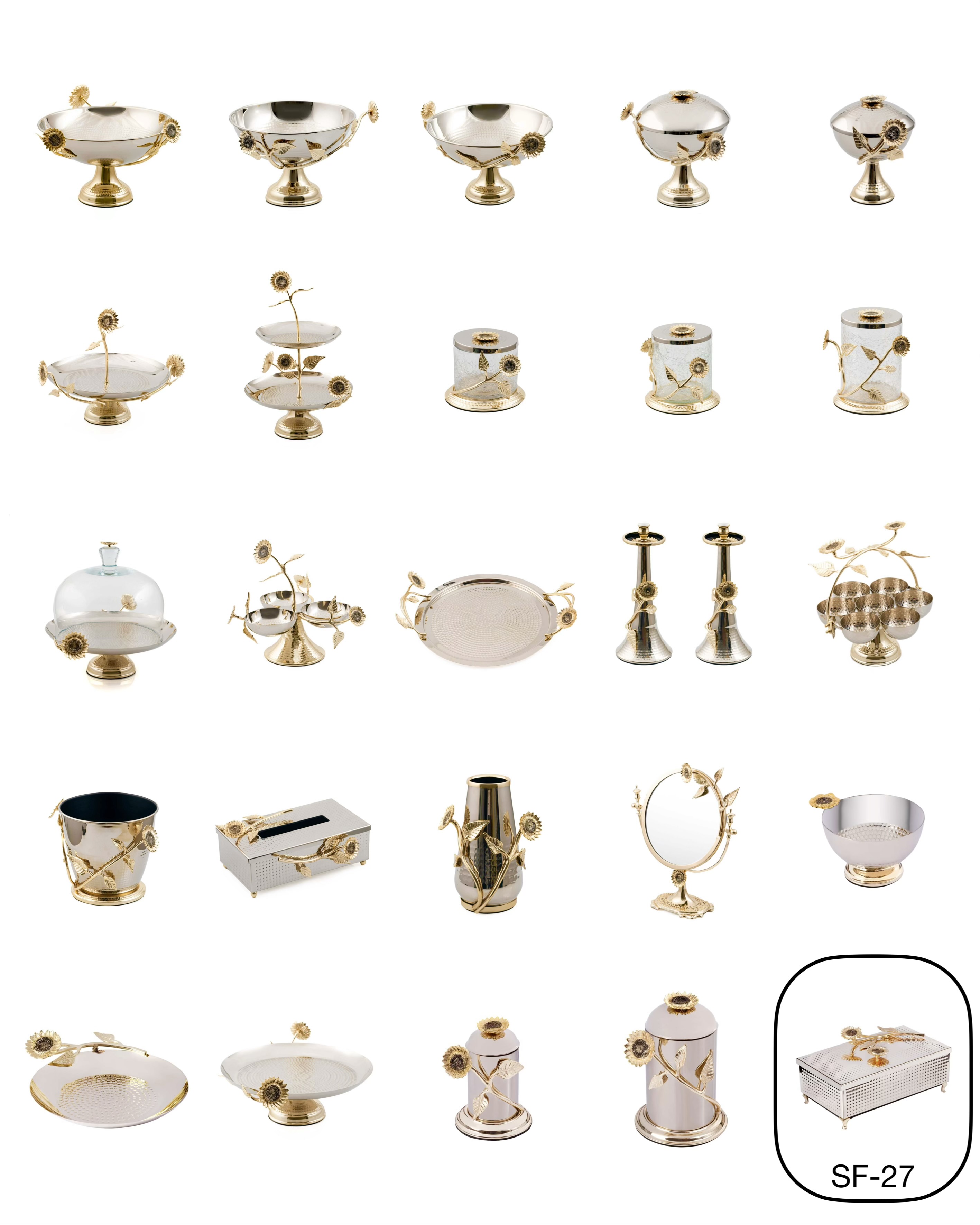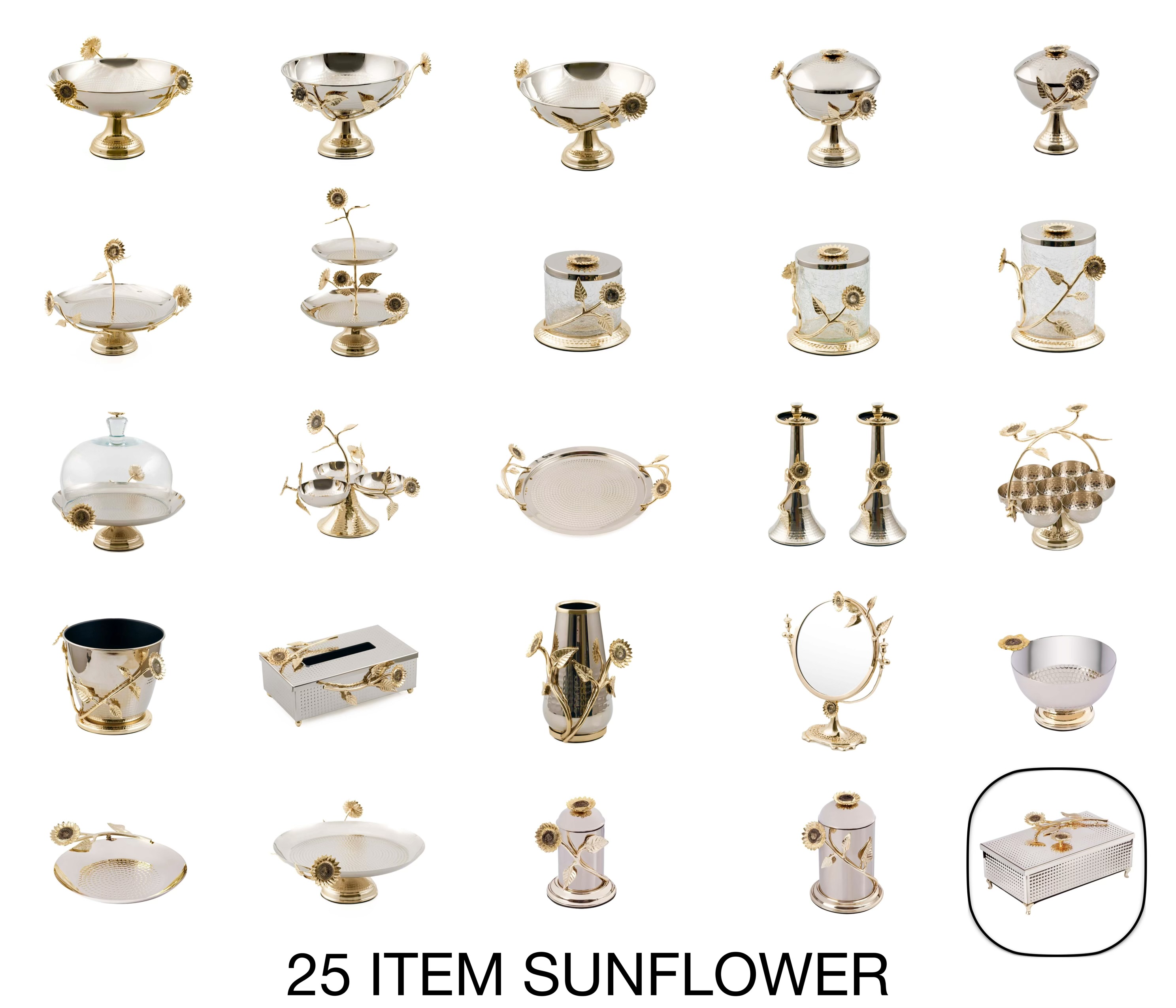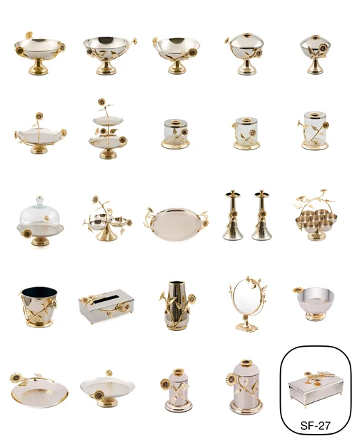 مجموعه Sunflower برنجی با 25 آیتم طرح گل آفتابگردان ، باکیفیتترین و جذابترین پذیرایی در ایران را ارائه میدهد.