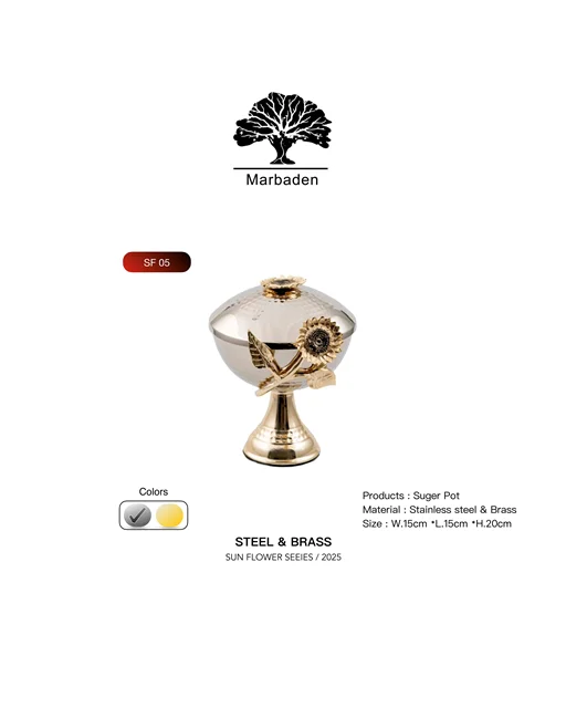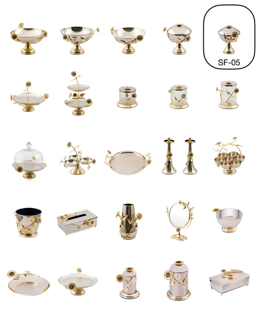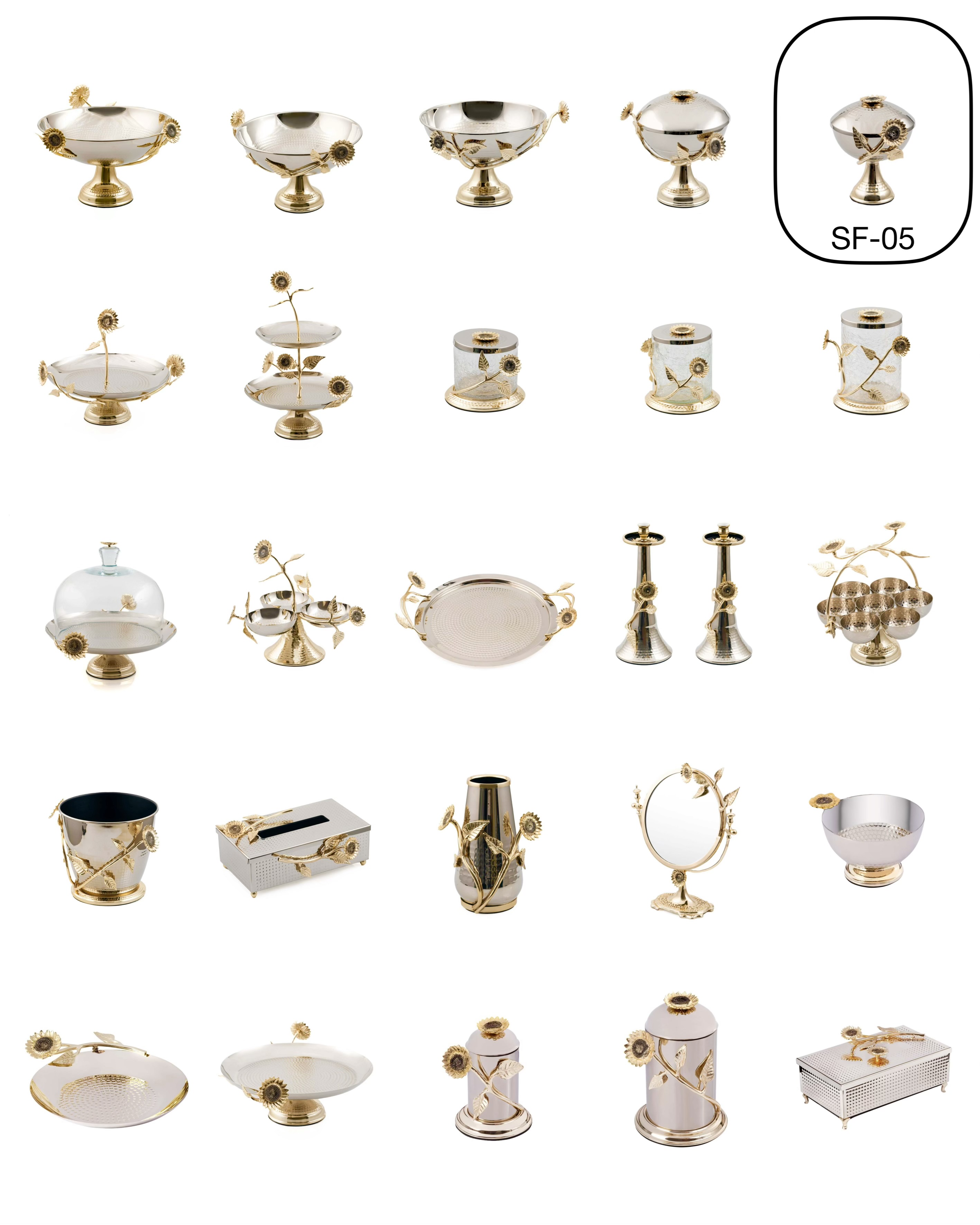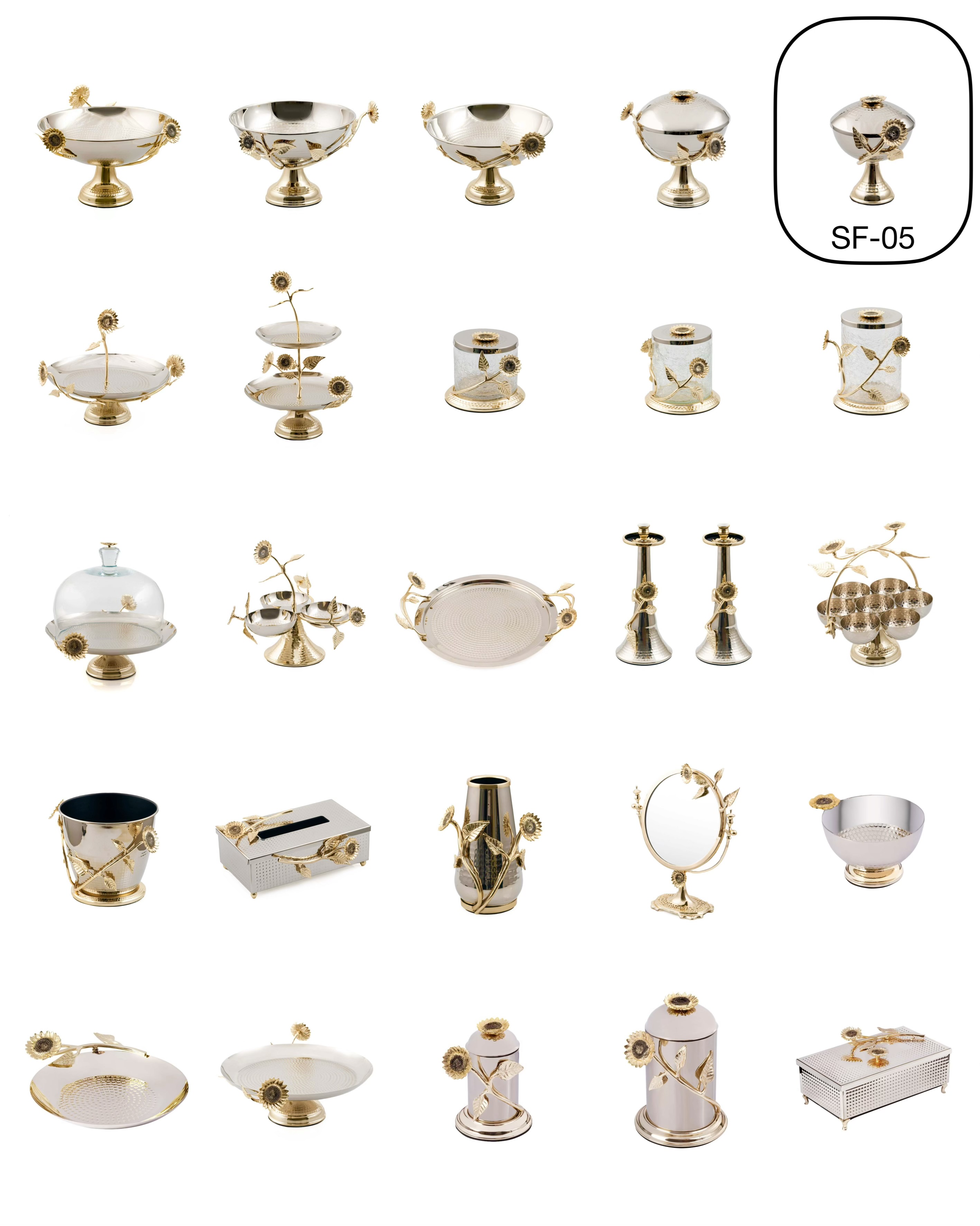 مجموعه Sunflower برنجی با 25 آیتم طرح گل آفتابگردان ، باکیفیتترین و جذابترین پذیرایی در ایران را ارائه میدهد.