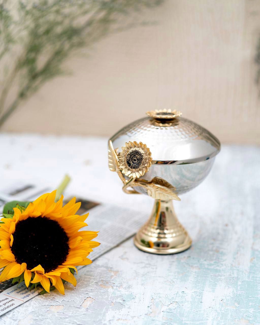 قندان پایه دار برنجی طرح گل آفتابگردان
