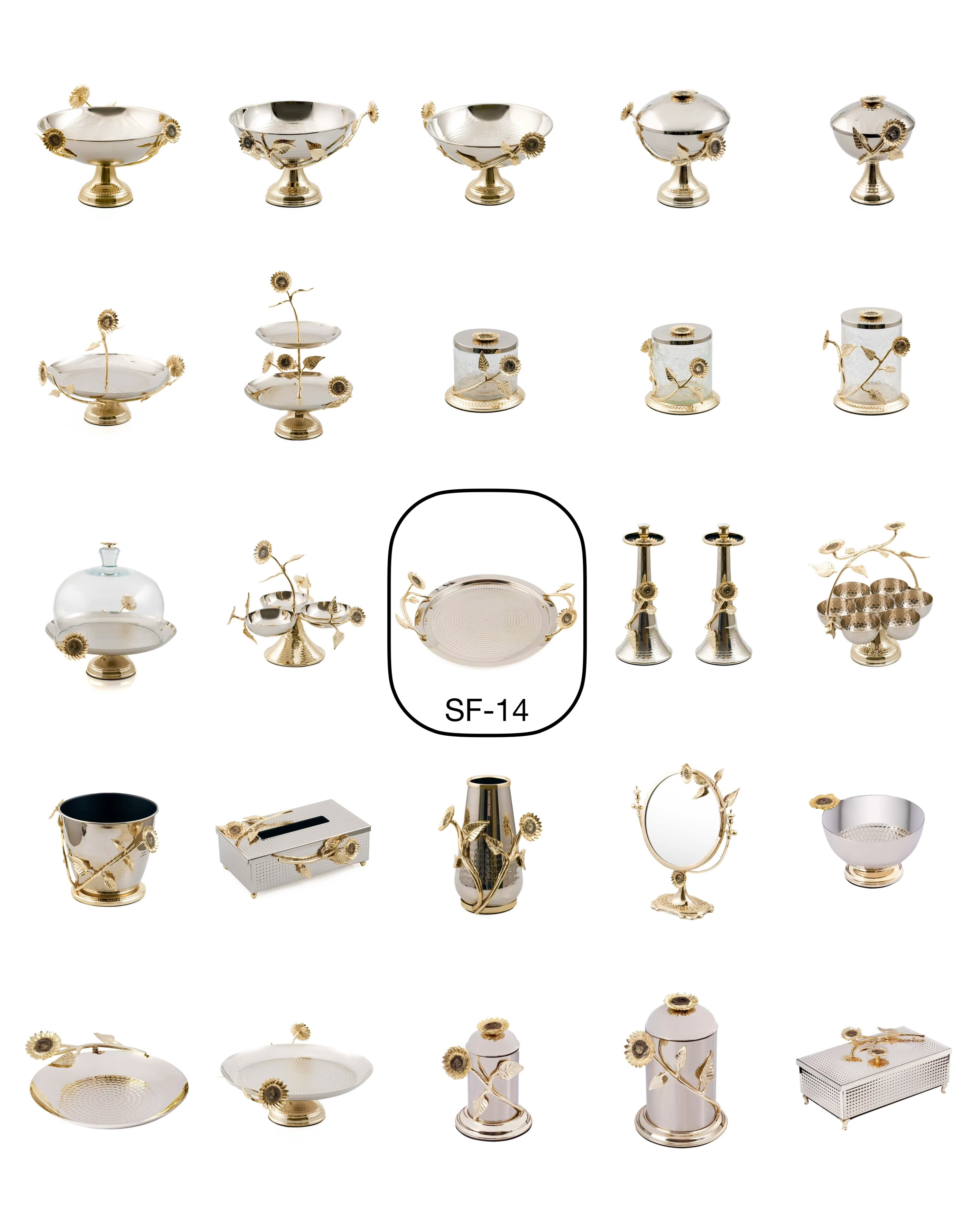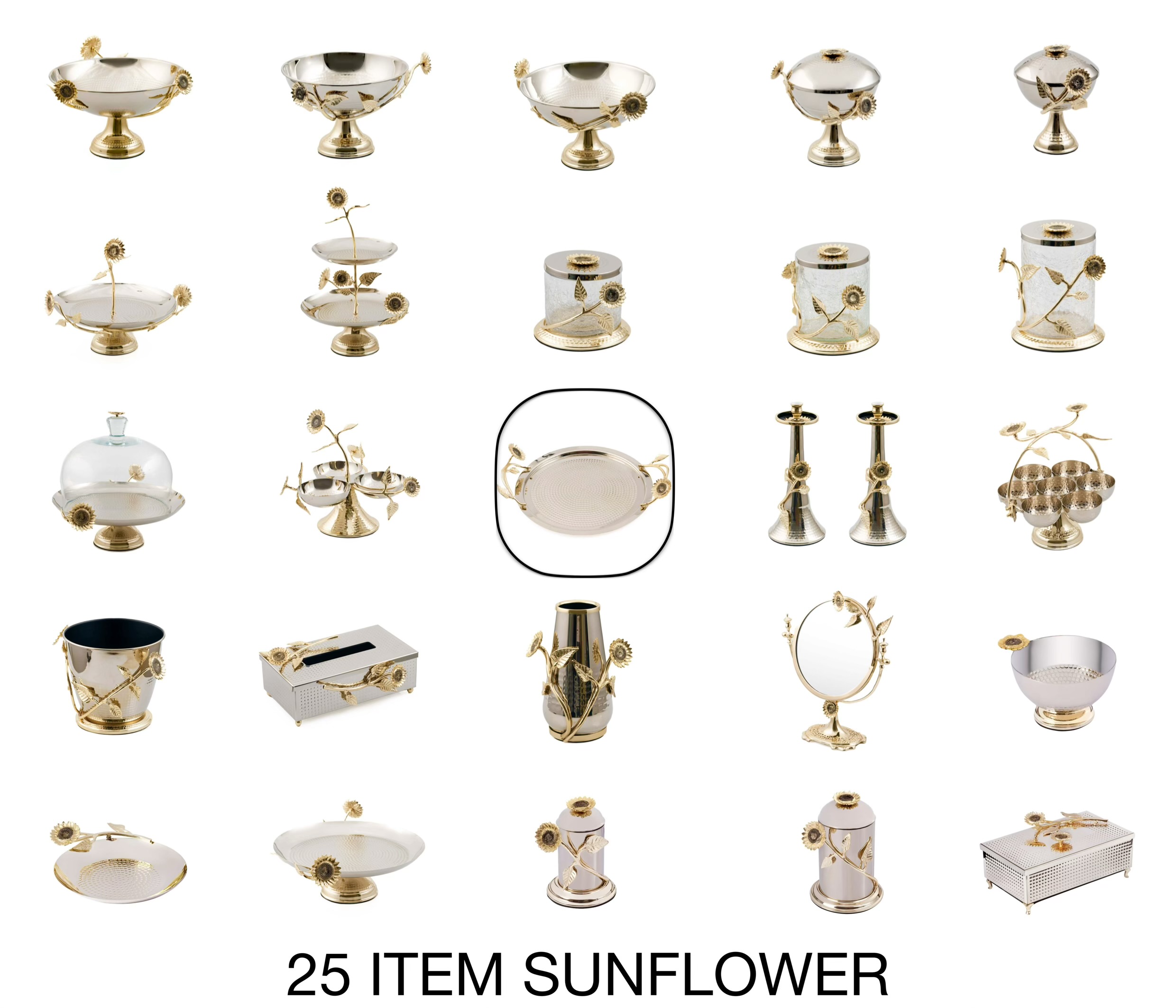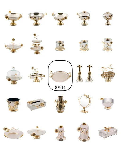 مجموعه Sunflower برنجی با 25 آیتم طرح گل آفتابگردان ، باکیفیتترین و جذابترین پذیرایی در ایران را ارائه میدهد.