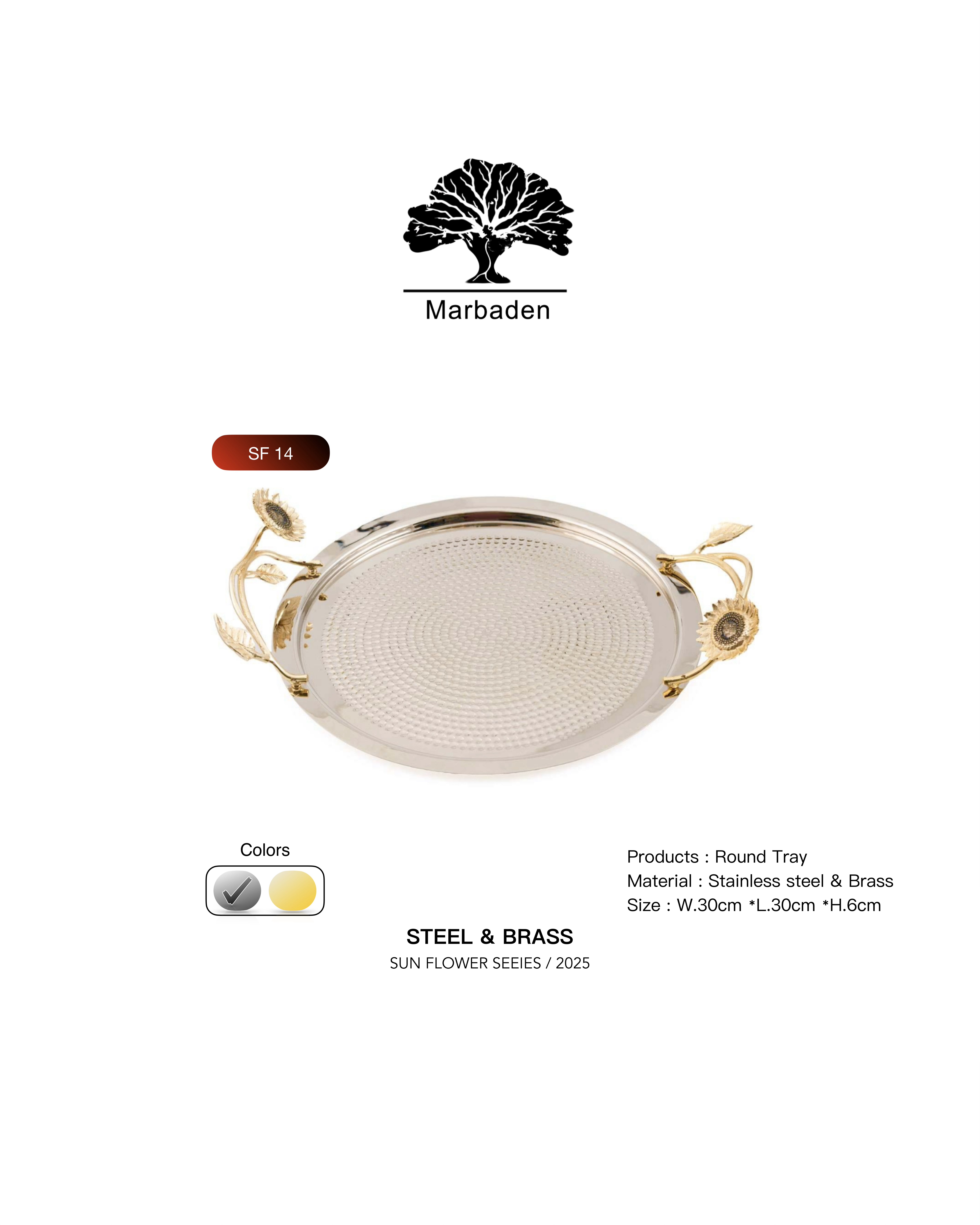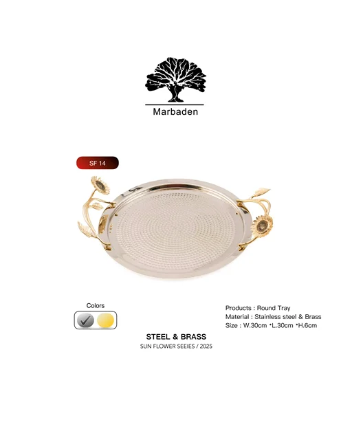 سینی چای استیل و برنجی طرح گل آفتابگردان