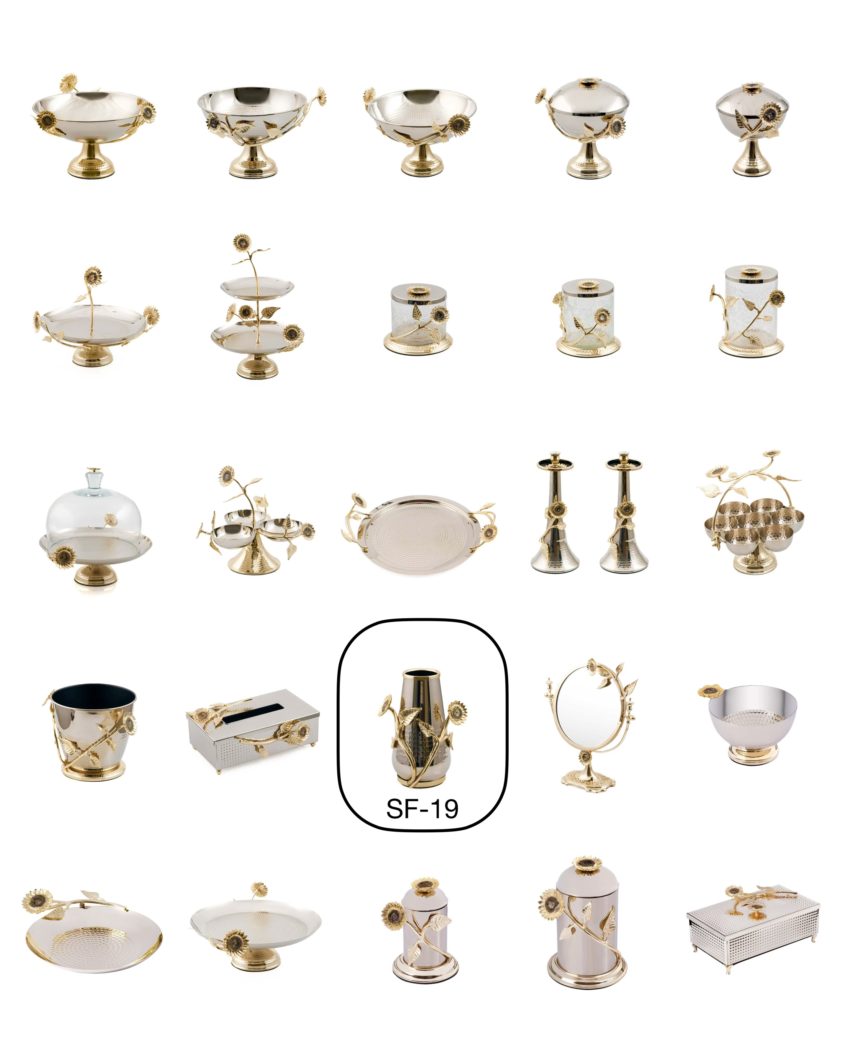 مجموعه Sunflower برنجی با 25 آیتم طرح گل آفتابگردان ، باکیفیتترین و جذابترین پذیرایی در ایران را ارائه میدهد.