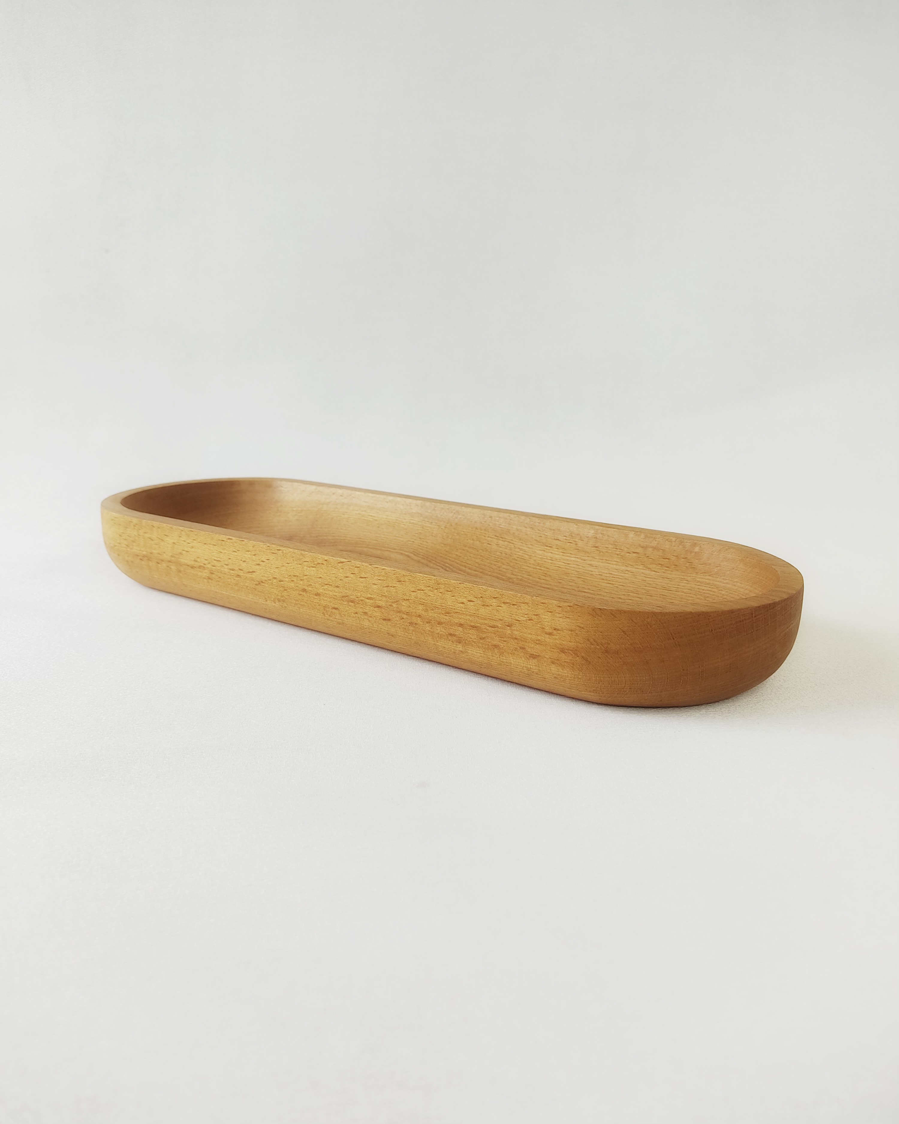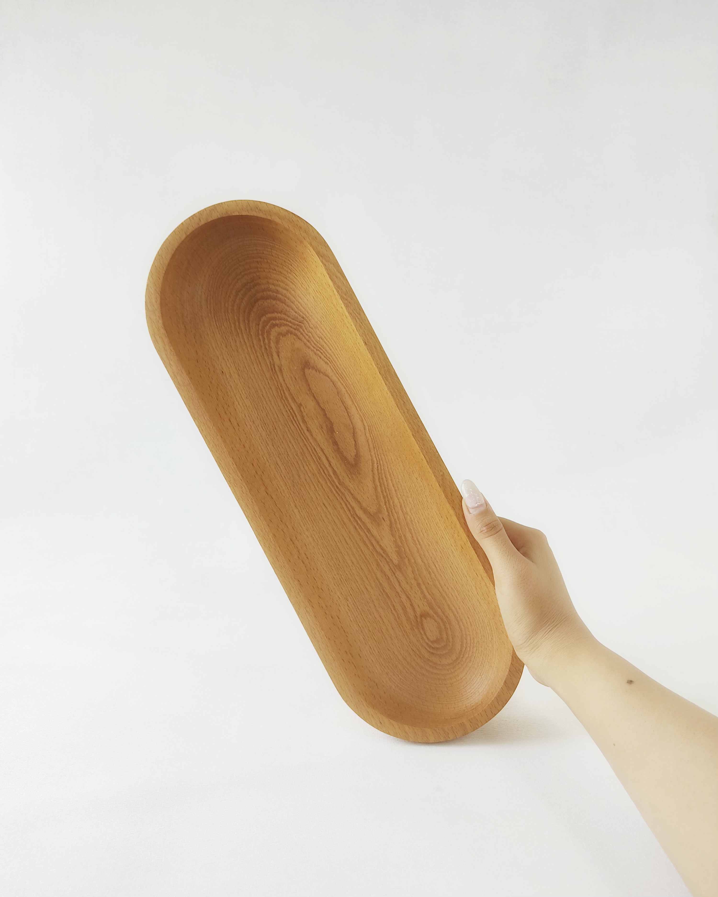 رنگ گرم چوب راش همراه با بافت طبیعیاش، به این سینی یه شخصیت زنده داده.