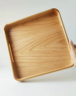 ساخت کلی سینی با دستگاه CNC انجام شده تا لبهها دقیق و فرم مربع تمیز باشه. اما پرداخت نهایی: