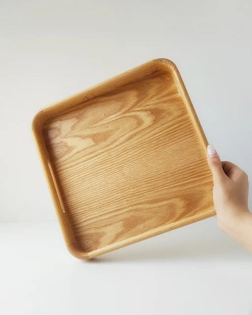 🪵 سینی مربع چوبی – ترکیبی از نظم و طبیعت