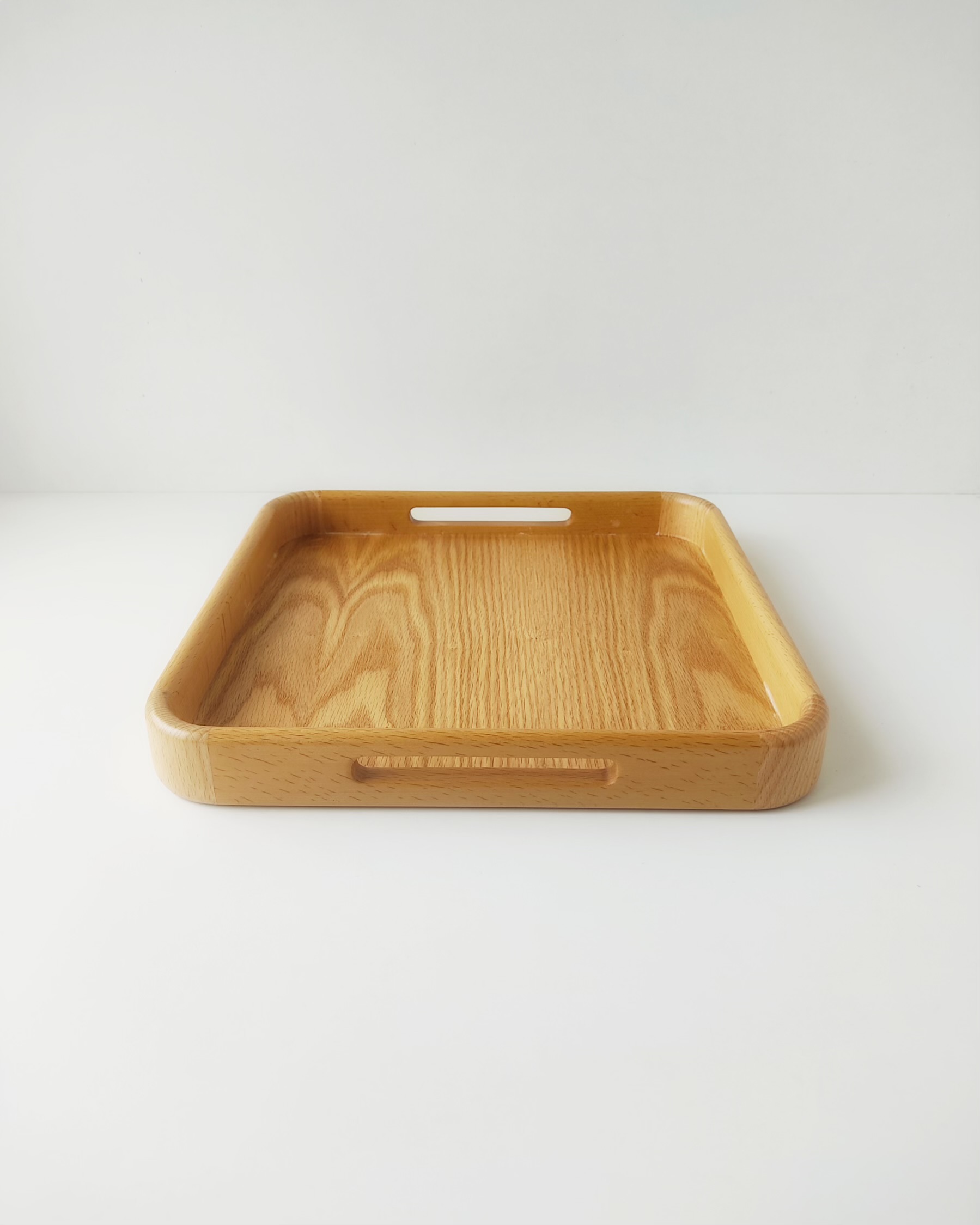 این سینی از چوب طبیعی راش ساخته شده — چوبی که معروفه به بافت یکنواخت، رنگ گرم و مقاومت بالا.