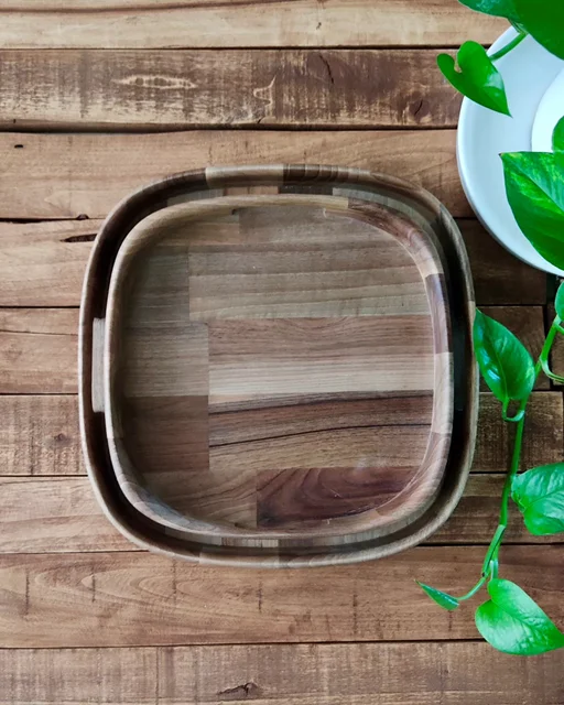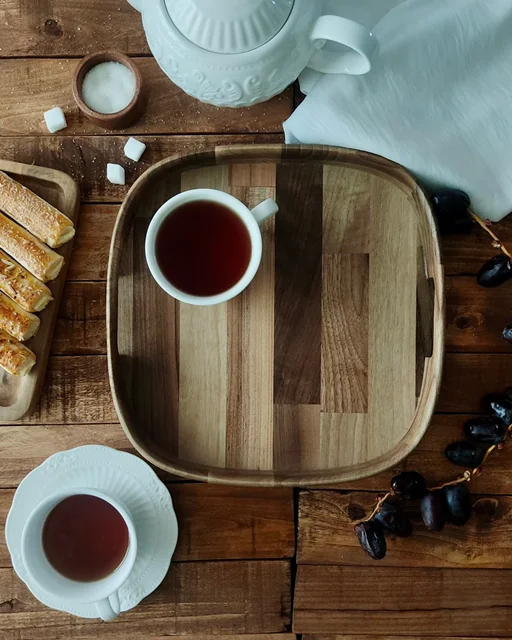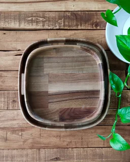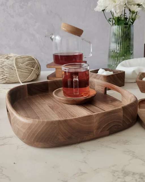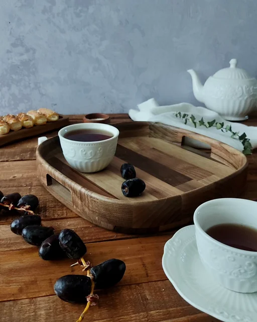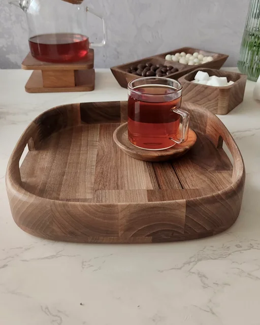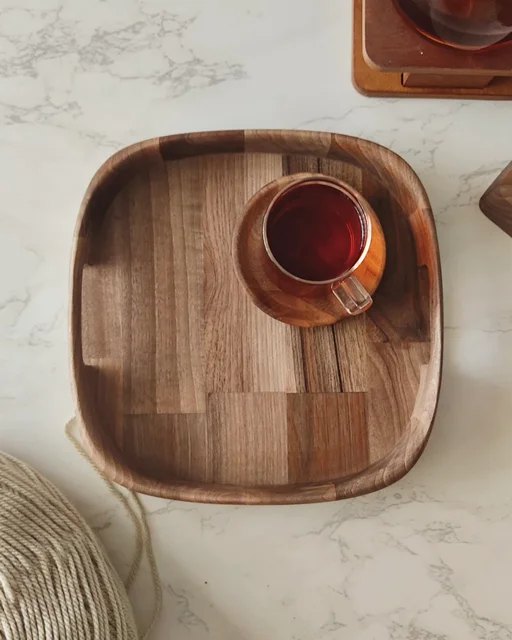 این سینیها حتی وقتی خالی باشن، مثل یک تکه دکور چوبی فضای آشپزخانه یا پذیرایی رو گرم و صمیمی میکنن. میتونی برای سرو صبحانه، عصرانه، یا حتی بهعنوان پایه دکور استفاده کنی.