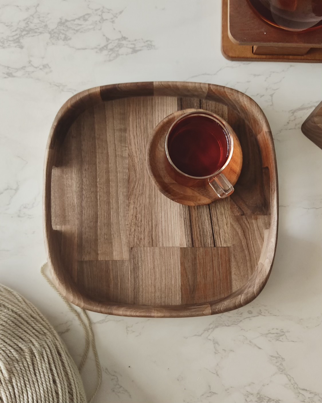 هر سینی از تکههای چوب گردوی طبیعی ساخته شده؛ با رگهها و رنگهای خاصی که هیچ دو تا نمونهاش شبیه هم نیست. این یعنی هر ست، منحصر به فرد و خاص توئه.