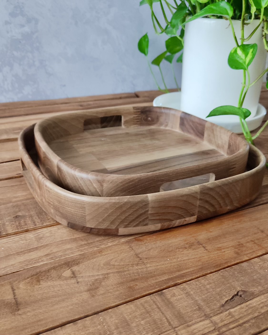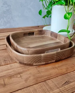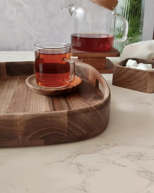 وقتی زیبایی و کاربرد رو کنار هم میخوای، این سینیهای چوب گردو دقیقاً همون ترکیب ایدهآلن. طراحی ساده و مینیمال، با بافت طبیعی و گرم چوب، باعث میشه هم برای پذیرایی شیک باشه، هم برای استفاده روزمره دلنشین.